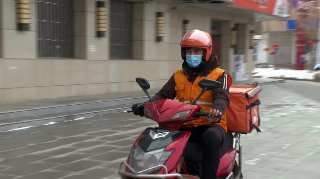 骑手伊力扎提·吐拉江说,一天能送到40~50个单子,虽然冬天辛苦一点,但是也能得到不错的收入,希望大家春节快乐。