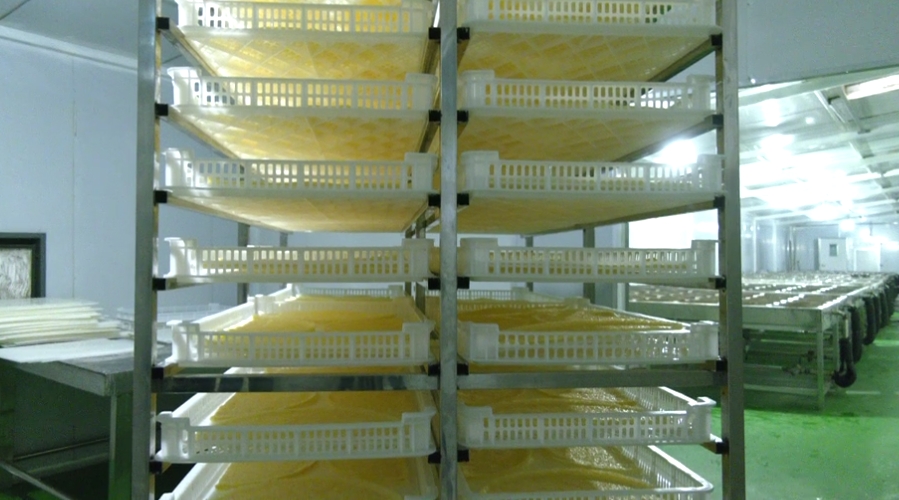 3月6日,在特克斯县乔拉克铁热克镇伊犁蜜泉食品加工有限公司的加工车间,浓郁的奶香扑鼻而来,工人们正将一锅锅鲜美的牛奶熬制成奶皮、奶酪等奶制品。伊犁蜜泉食品加工有限公司的“丝路蜜泉”品牌,有10余种不同口味的老酸奶、手工奶疙瘩、奶皮子等产品,由于口味多样化、品质上乘赢得了各地顾客的青睐。