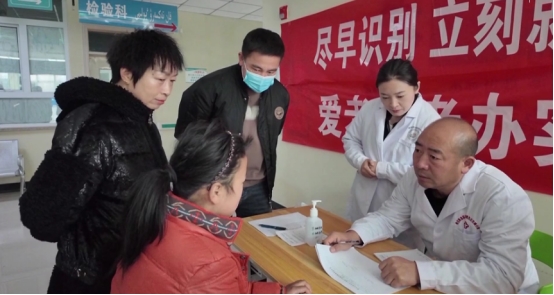 △特克斯县中医医院医护人员正在了解患者情况和登记信息 吾兰摄
