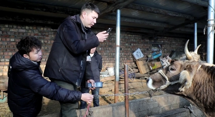 1月15日,中国平安财产保险股份有限公司特克斯支公司工作人员深入齐勒乌泽克镇阔布村,开展奶牛保险上门办理服务。村民加吾代提·肖吾开提是该政策的长期受益者,自政策性养殖保险普及以来,每年都会主动为自家奶牛投保。在工作人员的专业指导下,他顺利完成微型芯片植入、扫描、拍照、信息录入等全流程操作,成功为自家奶牛办妥投保手续。