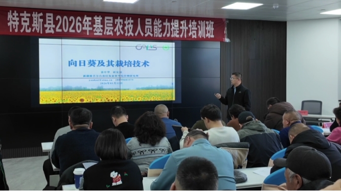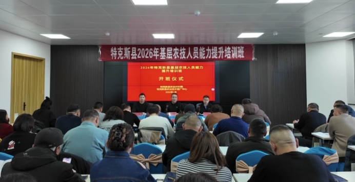 1月12日,特克斯县基层农技人员能力提升培训班正式开班,来自全县9个乡镇场的50名农业技术员、种植大户齐聚一堂,开启为期5天、共40个课时的集中培训,为当地农业高质量发展注入科技动能。
