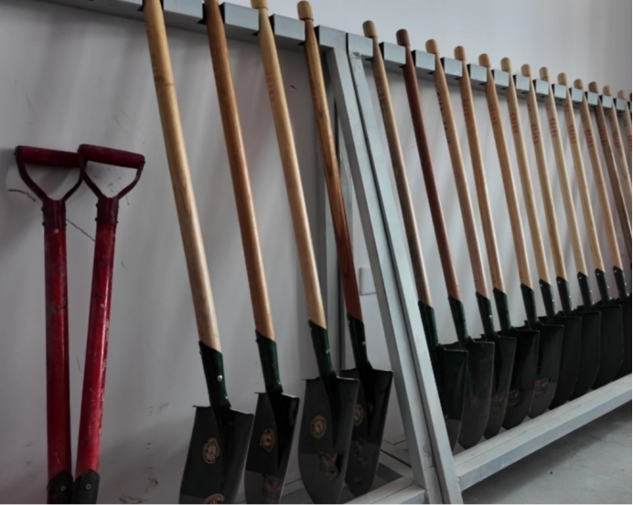 △储备充足的铅丝石笼网,铁锹等防汛抢险工具 张瑞 摄