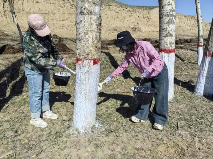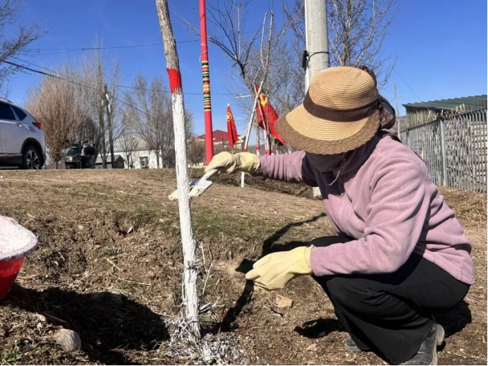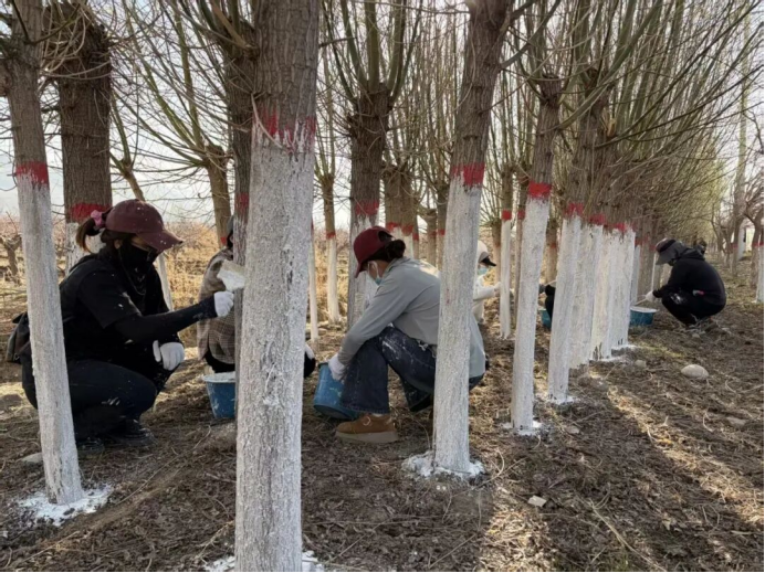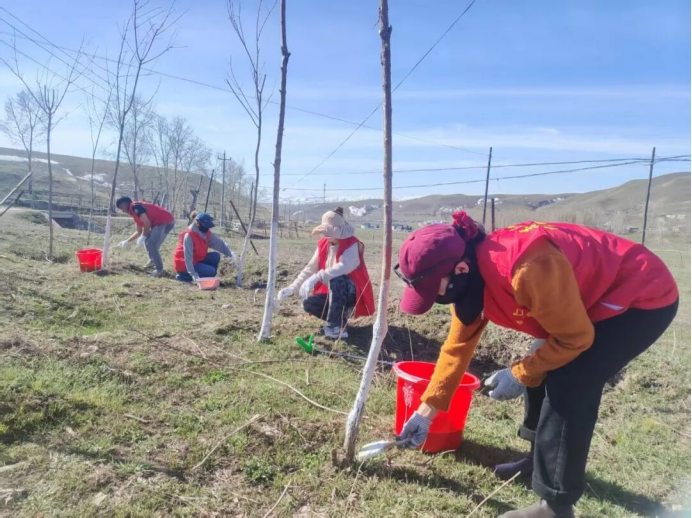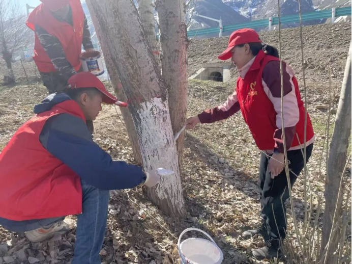 乔拉克铁热克镇孟布拉克村团支部组织团员志愿者开展春季树木涂白养护活动。志愿者们身着红马甲,为田间树木统一涂刷涂白剂,有效预防病虫害、防冻防裂,守护苗木健康生长。此次活动既美化了乡村环境,也以实际行动践行生态保护理念,为春日乡村增添一抹亮丽志愿红。