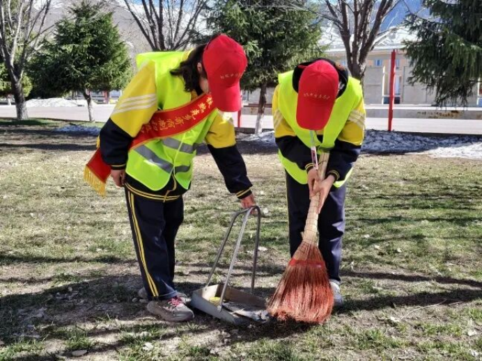 阔克铁热克乡初级中学团委组织团员开展校园环境整治活动。团员们分工协作,对教学楼、草坪及校园各个角落进行全面清扫,认真清理垃圾与杂物。大家以实际行动美化校园,增强了责任意识与集体荣誉感,营造出整洁文明的校园环境。