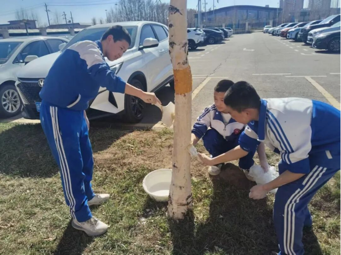 特克斯县第一中学团委组织师生开展树木刷白、校园环境集中整治活动。师生分工协作,为校园树木涂刷防护层,做好防虫养护,同时清理卫生死角、规整校园环境。活动既美化了校园、守护绿植健康,也培养了学生劳动意识与爱校护绿的责任担当,营造了整洁文明的育人氛围。