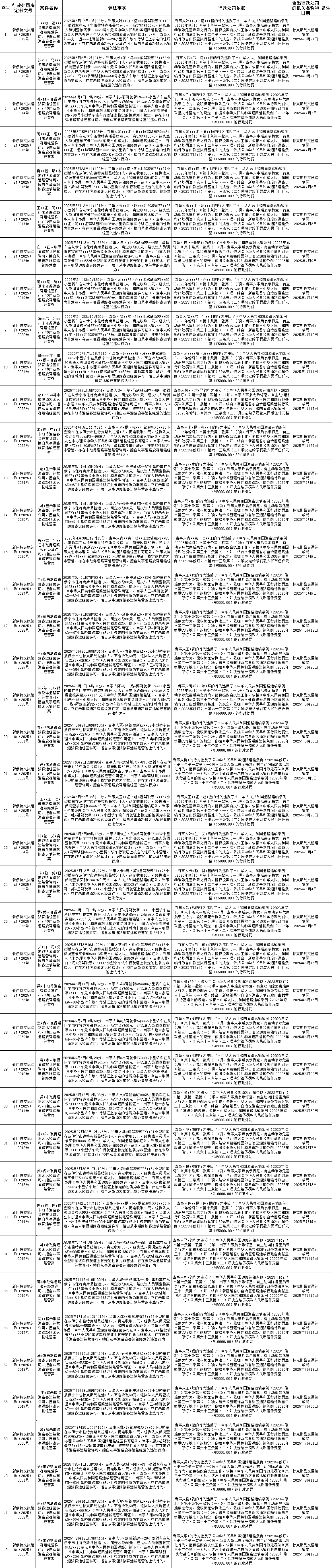 特克斯县交通运输局2025年行政处罚案件信息公示