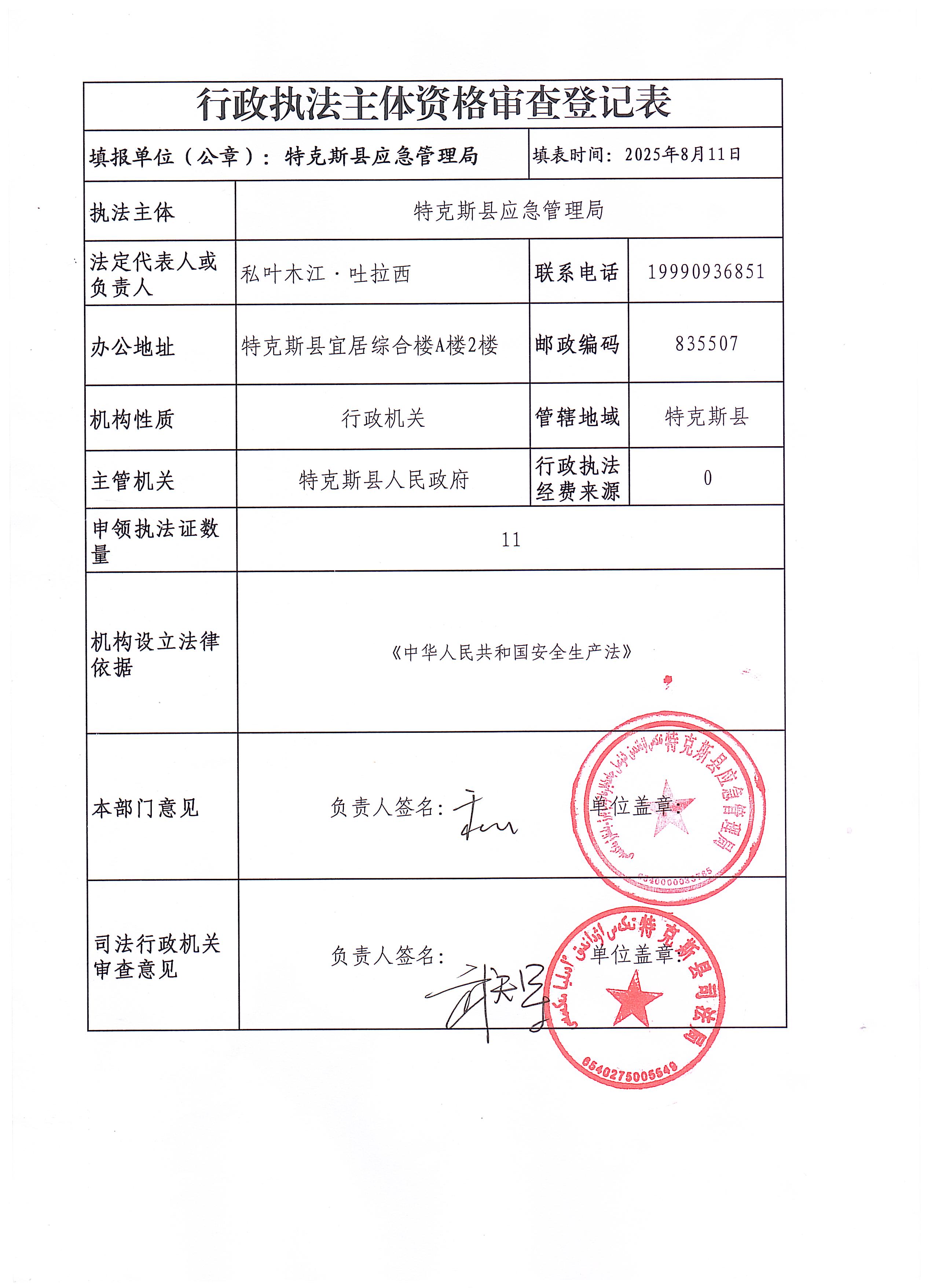 特克斯县住房和城乡建设局行政执法主体资格审查登记表