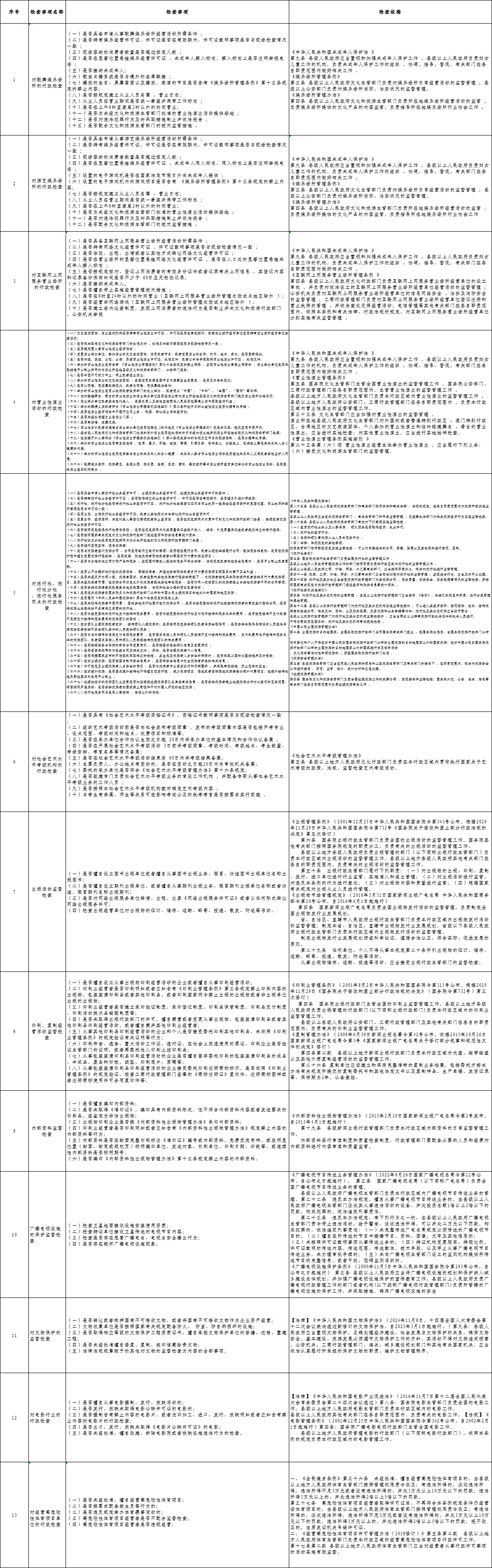 特克斯县文旅局2025年涉企行政检查事项和依据