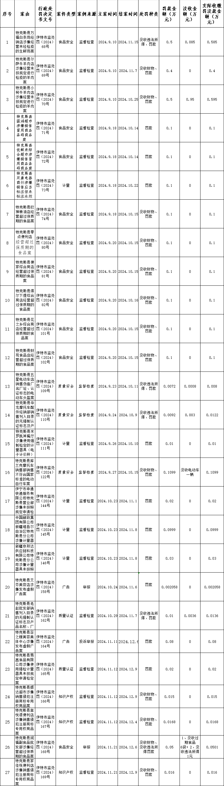 特克斯县市场监督管理局2024年第四季度行政处罚案件公示