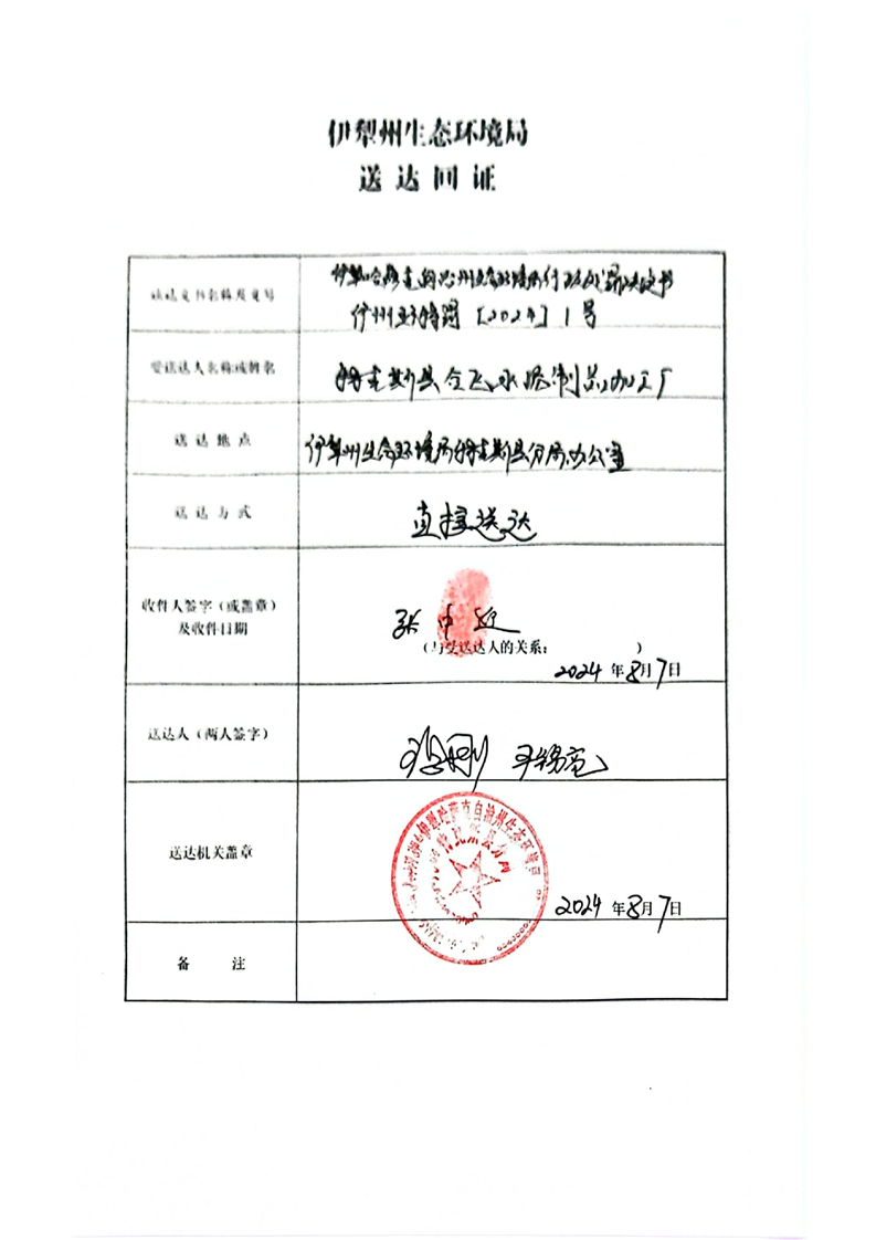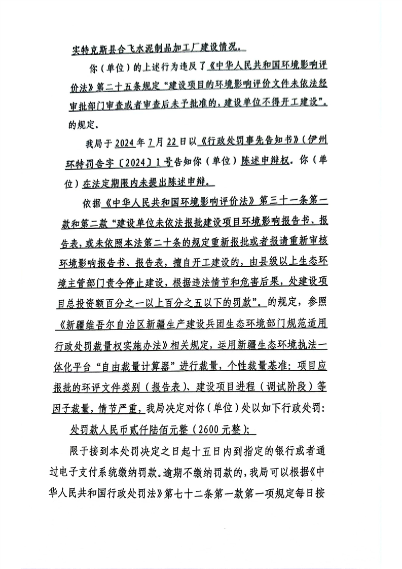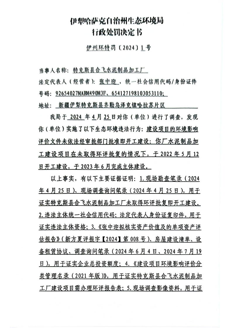 伊犁哈萨克自治州生态环境局行政处罚决定书(伊州环特罚〔2024〕1号)