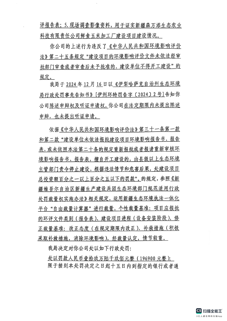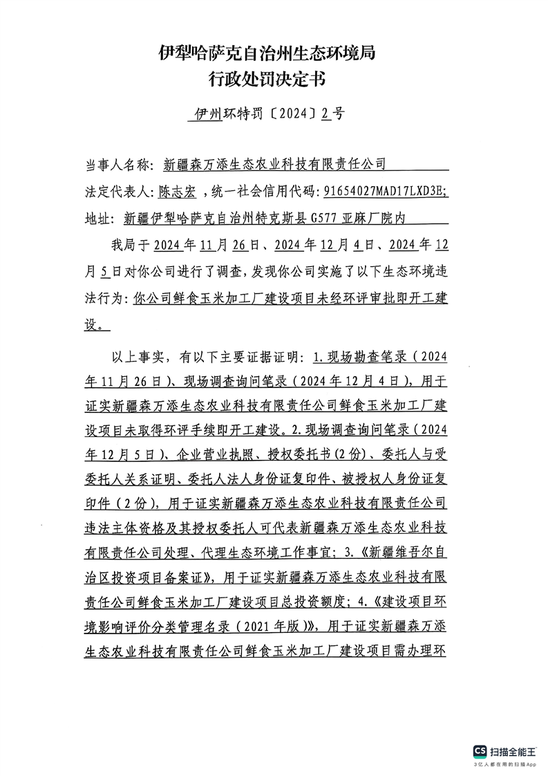 伊犁哈萨克自治州生态环境局行政处罚决定书(伊州环特[2024]2号)