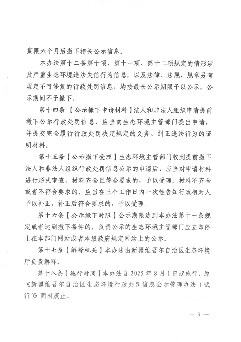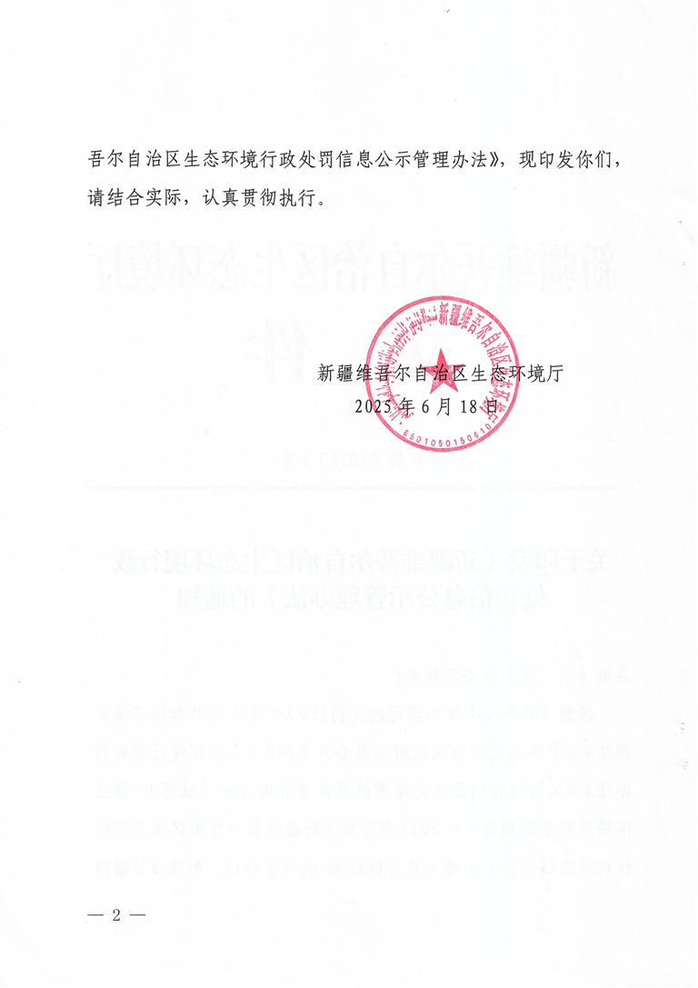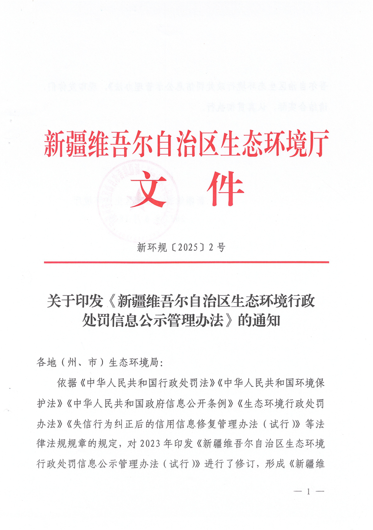 关于印发《新疆维吾尔自治区生态环境行政处罚信息公示管理办法》的通知