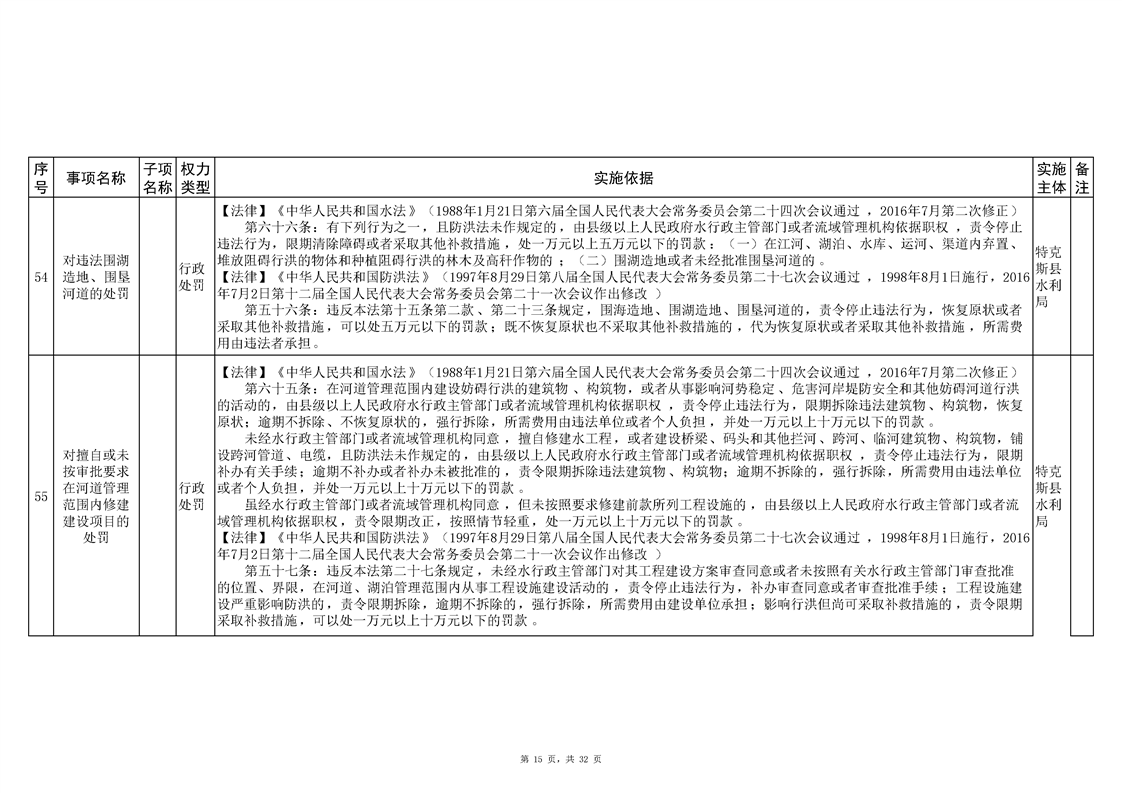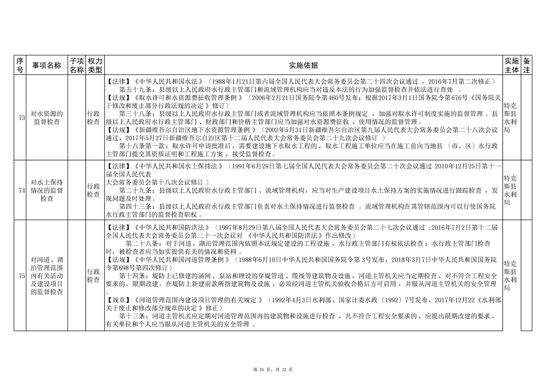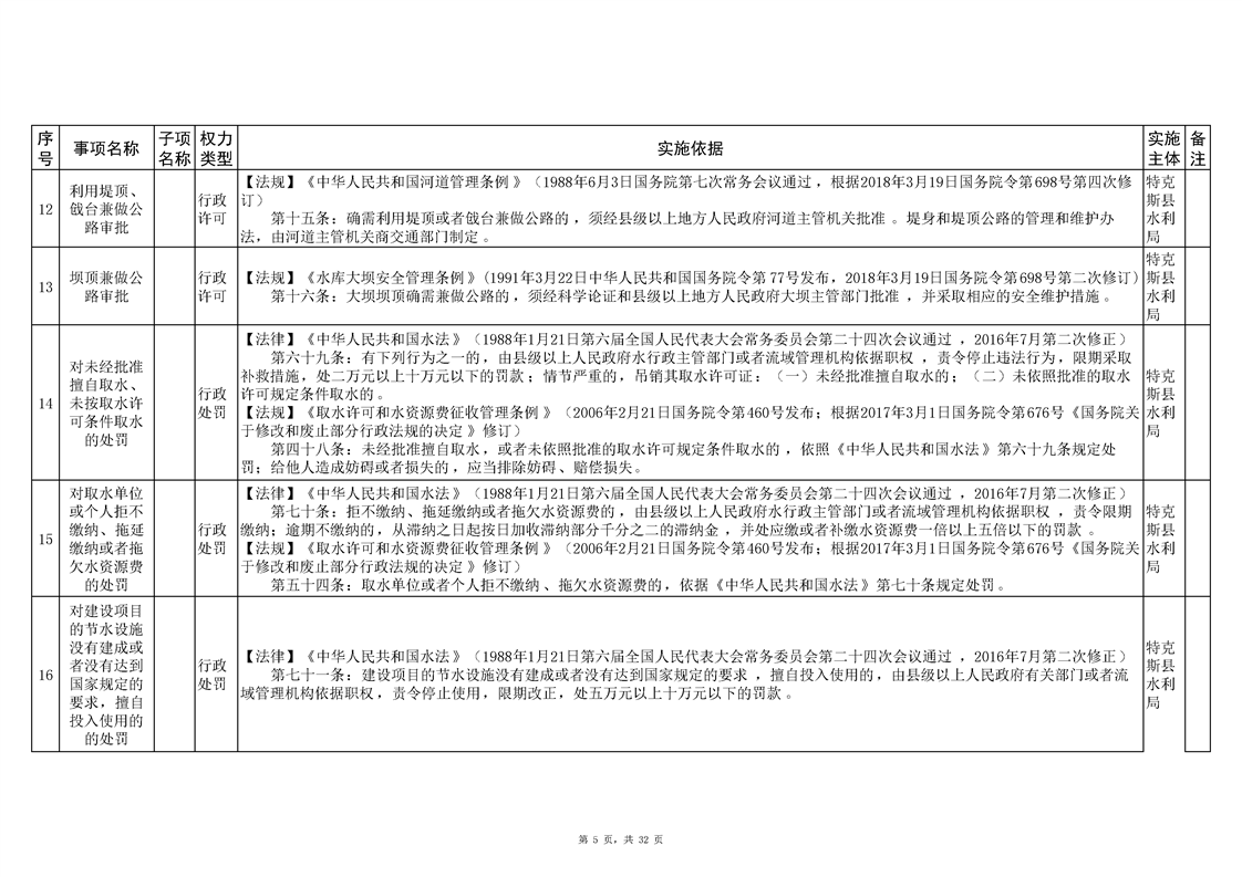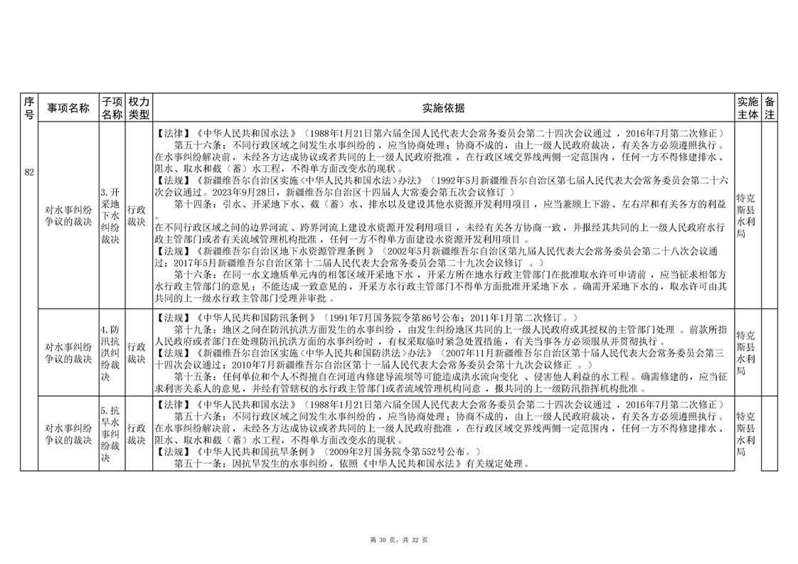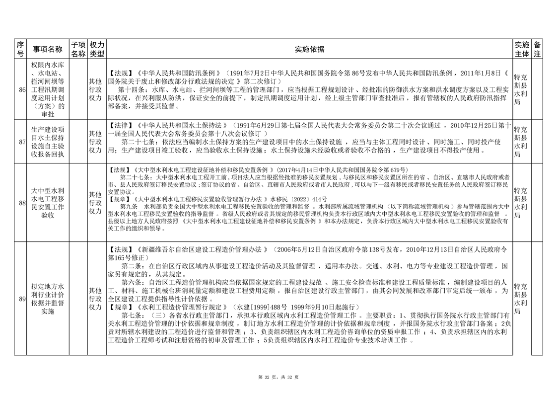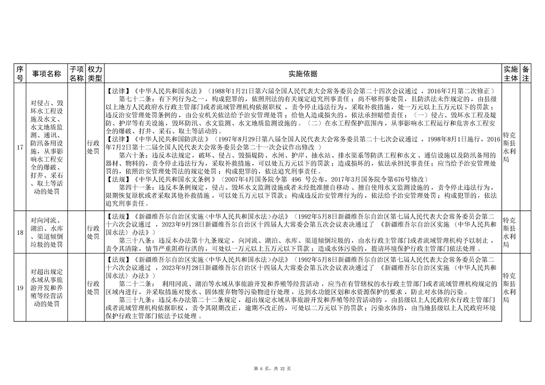 .特克斯县水利局2024年行政执法事项清单