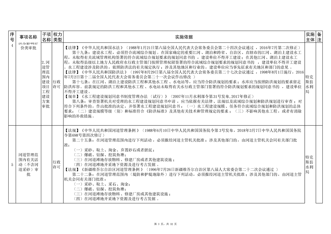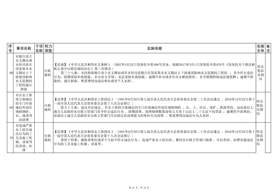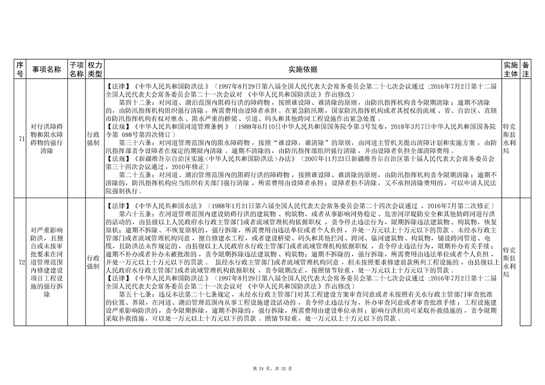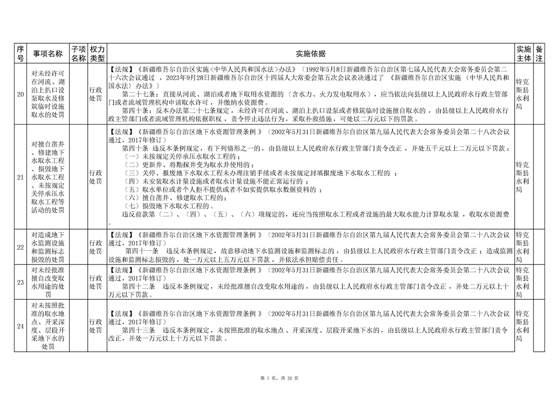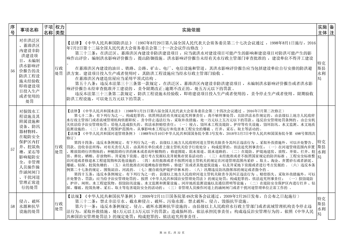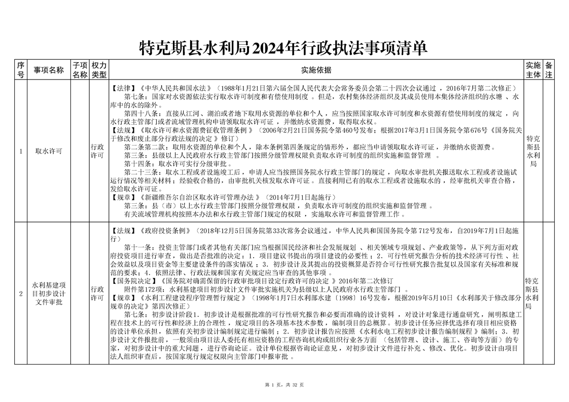 .特克斯县水利局2024年行政执法事项清单