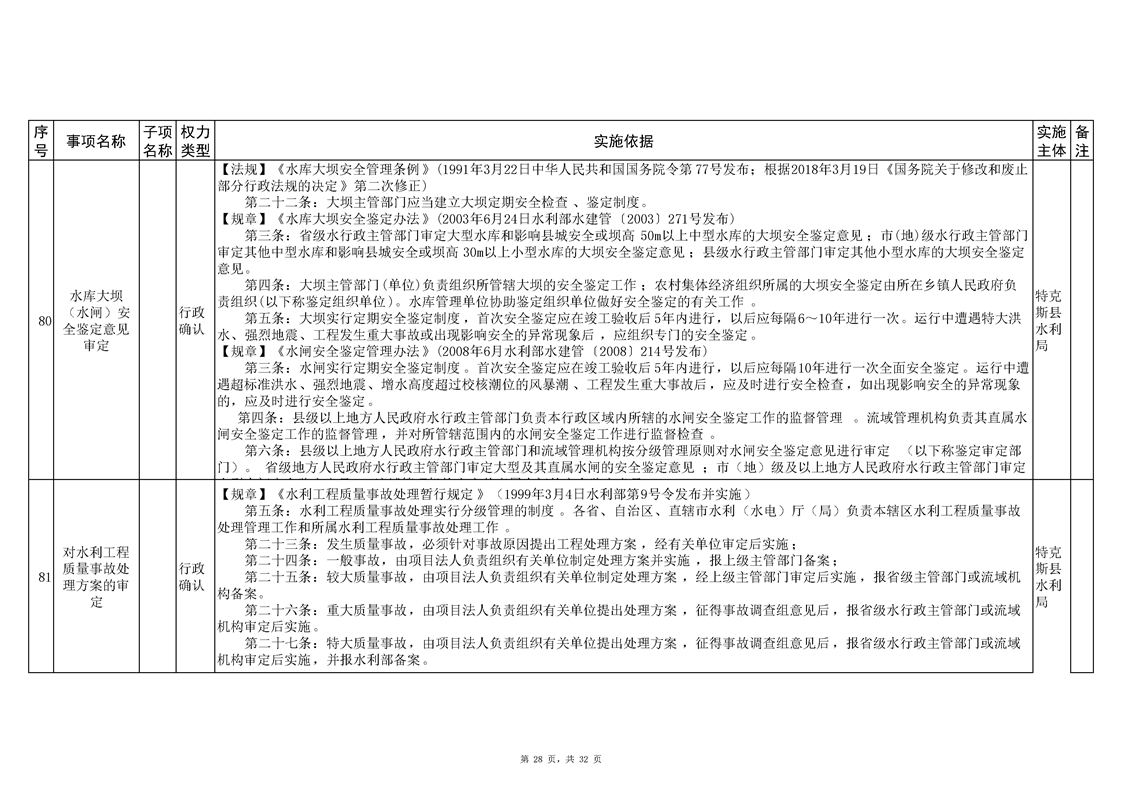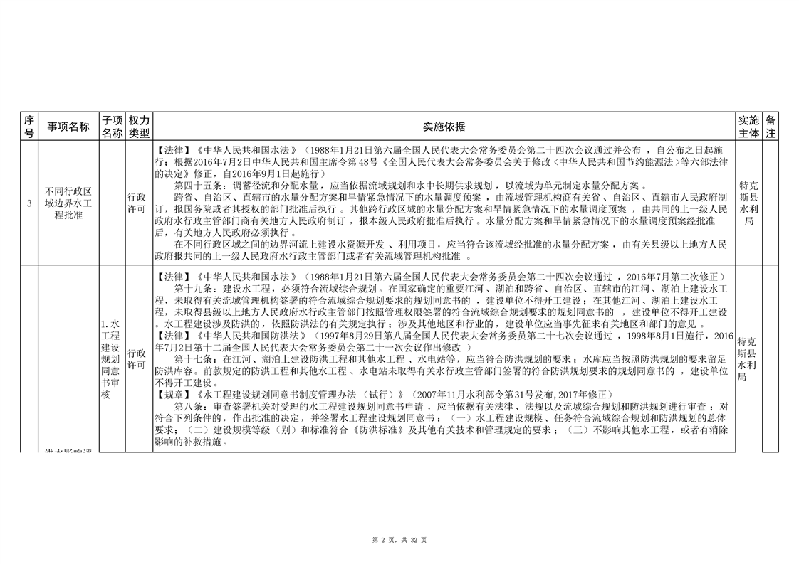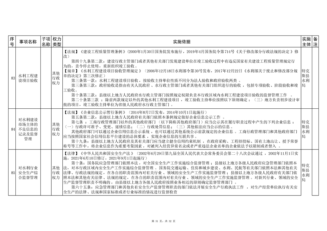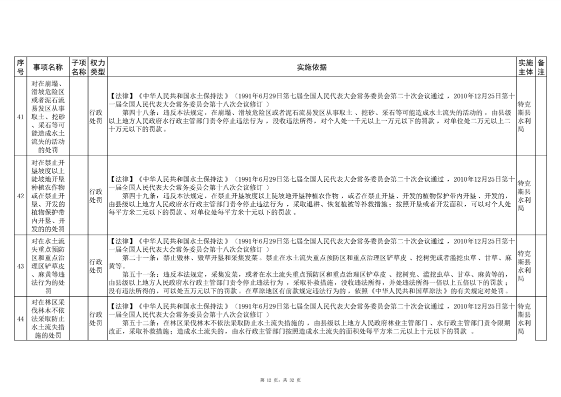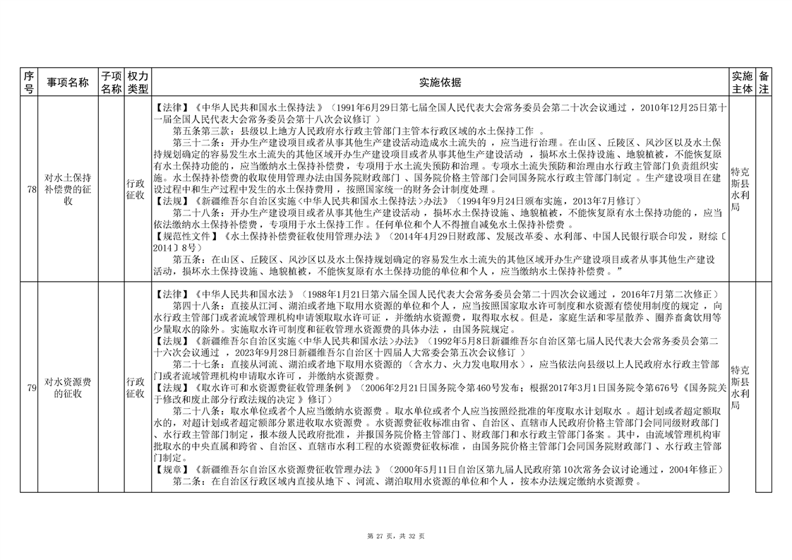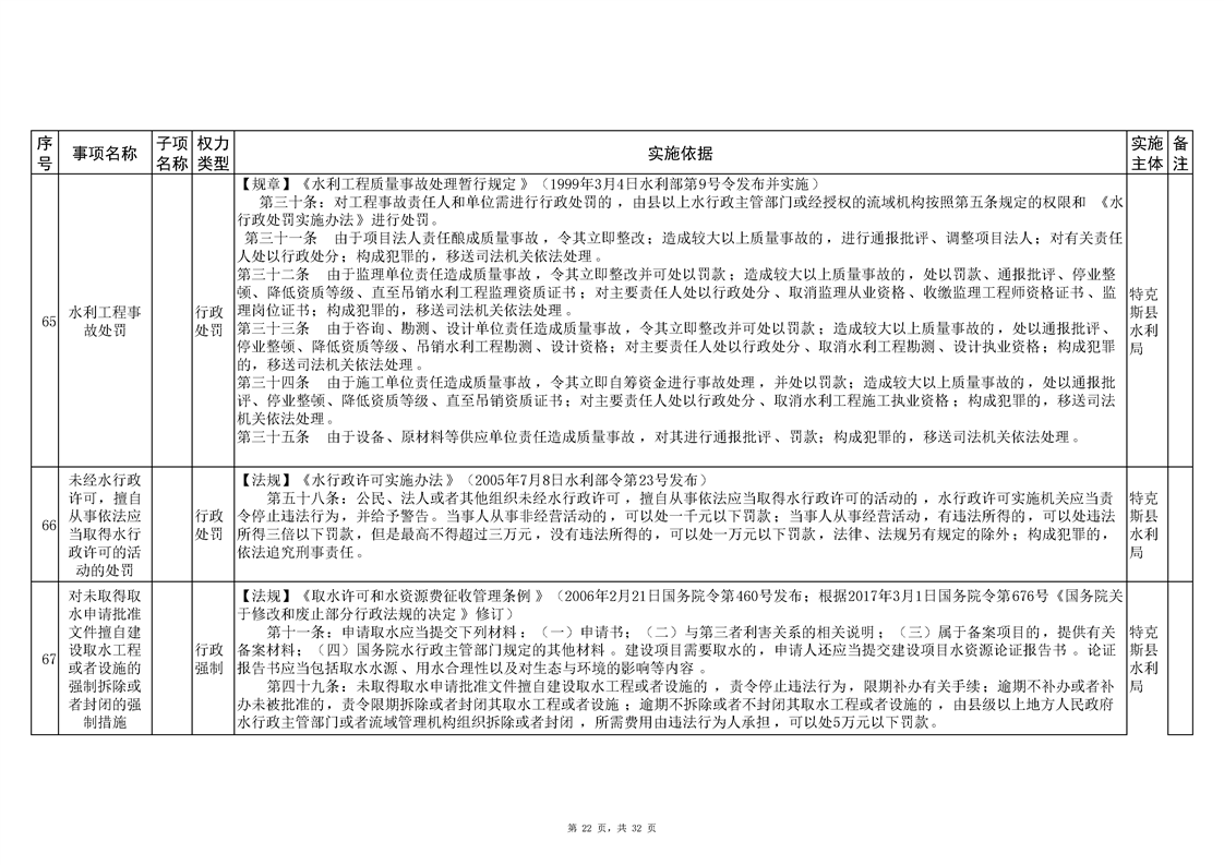 .特克斯县水利局2024年行政执法事项清单