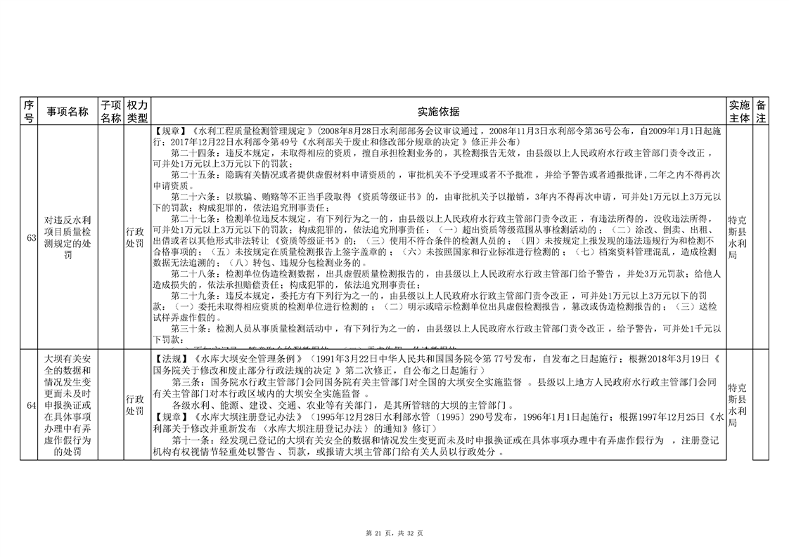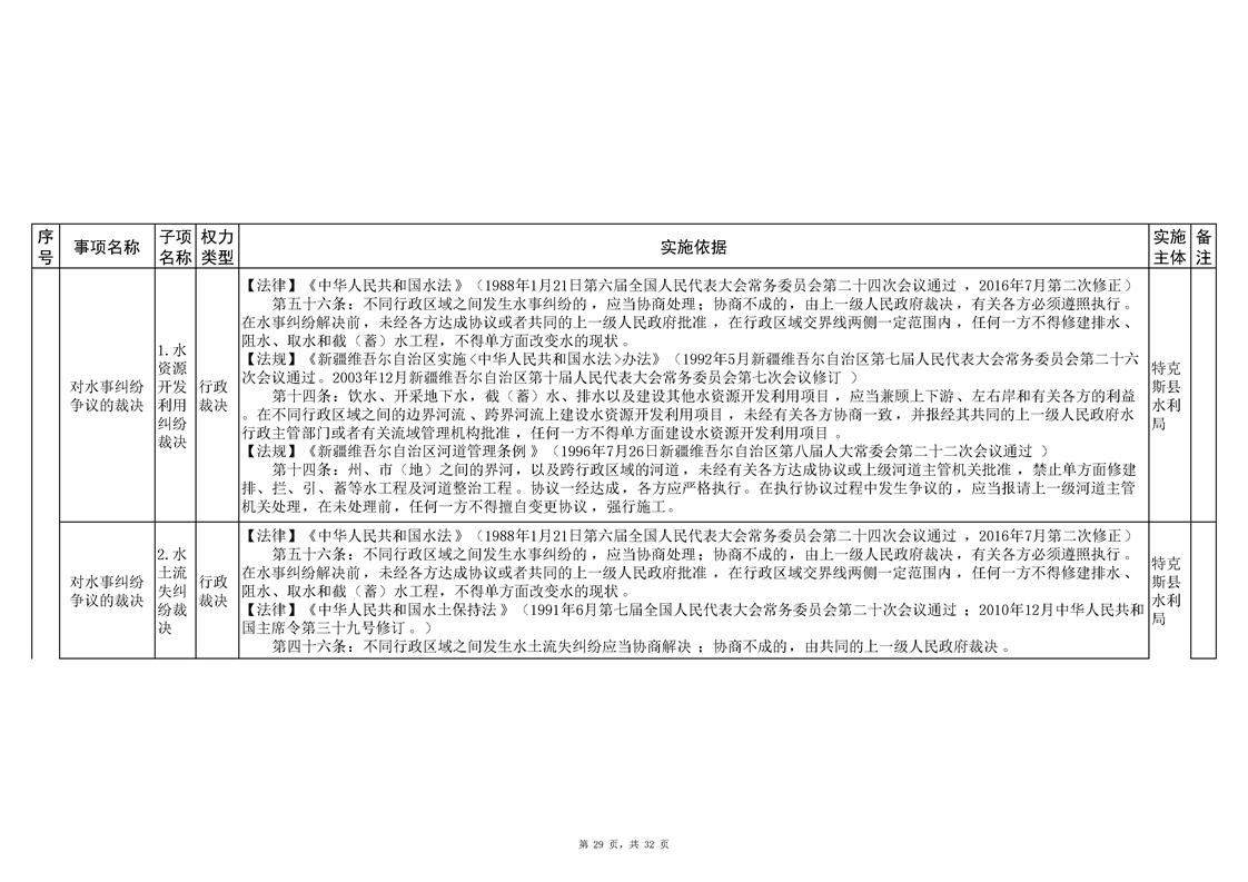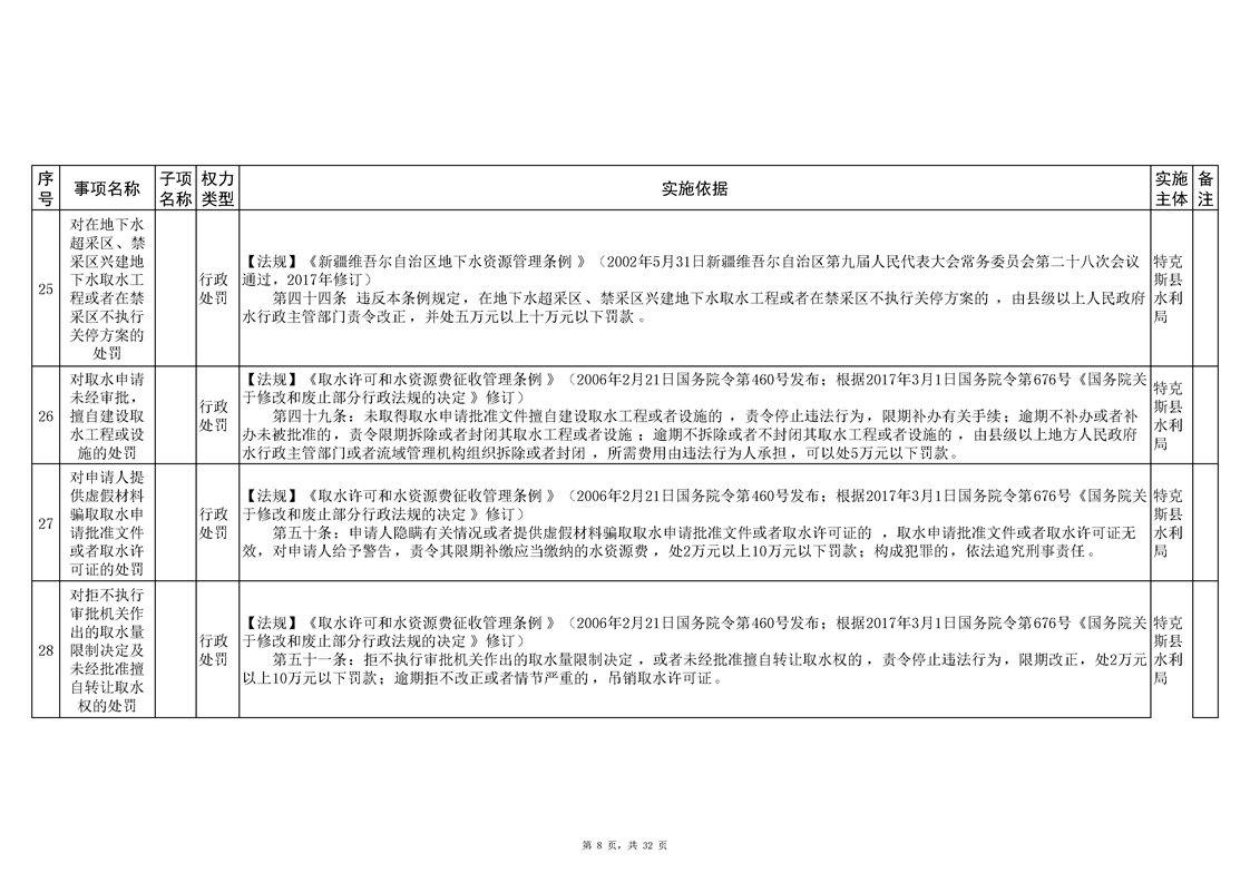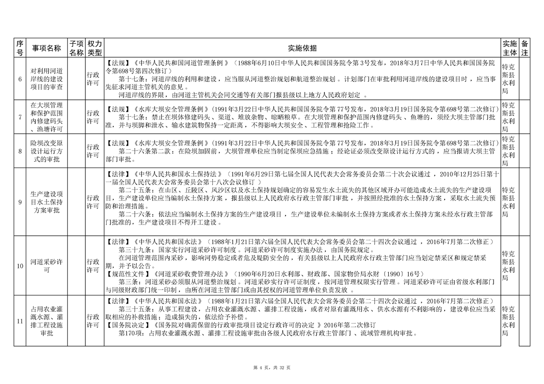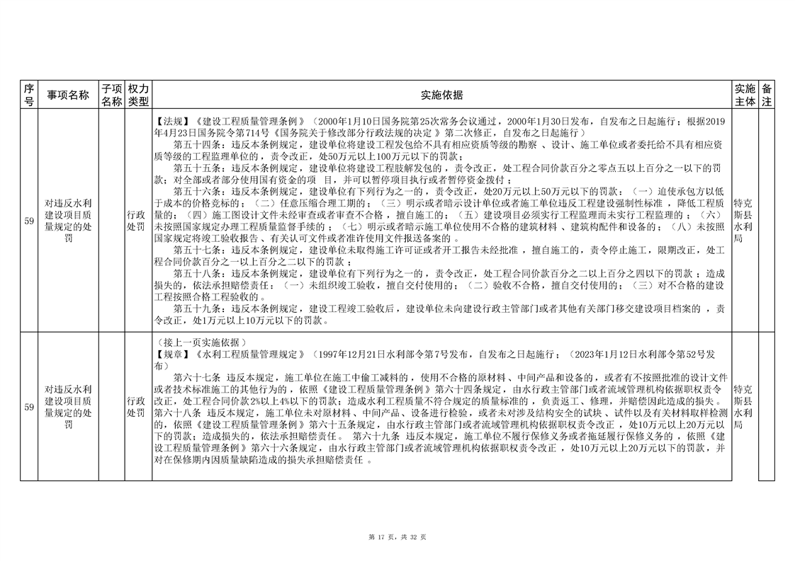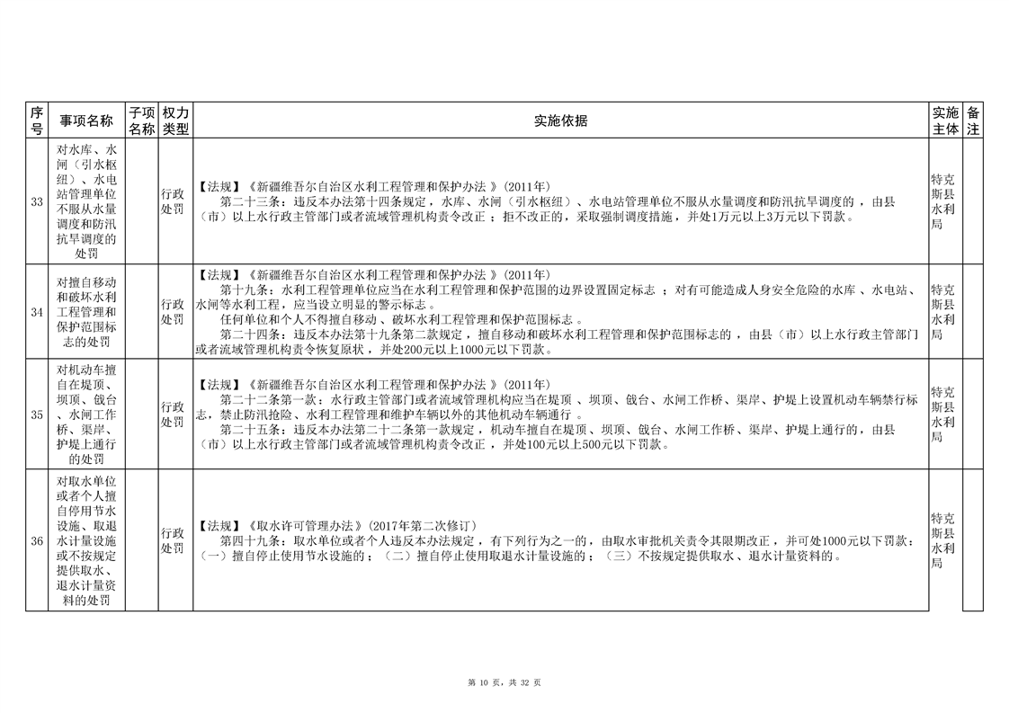 .特克斯县水利局2024年行政执法事项清单