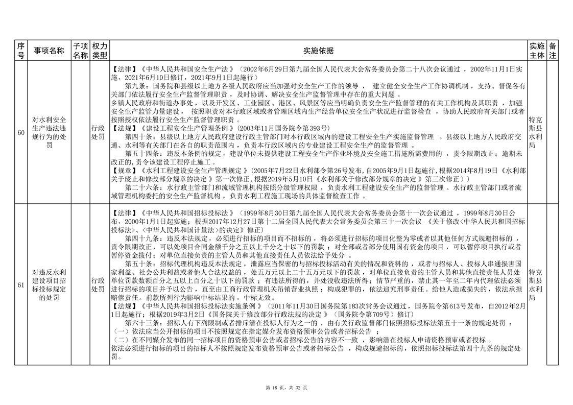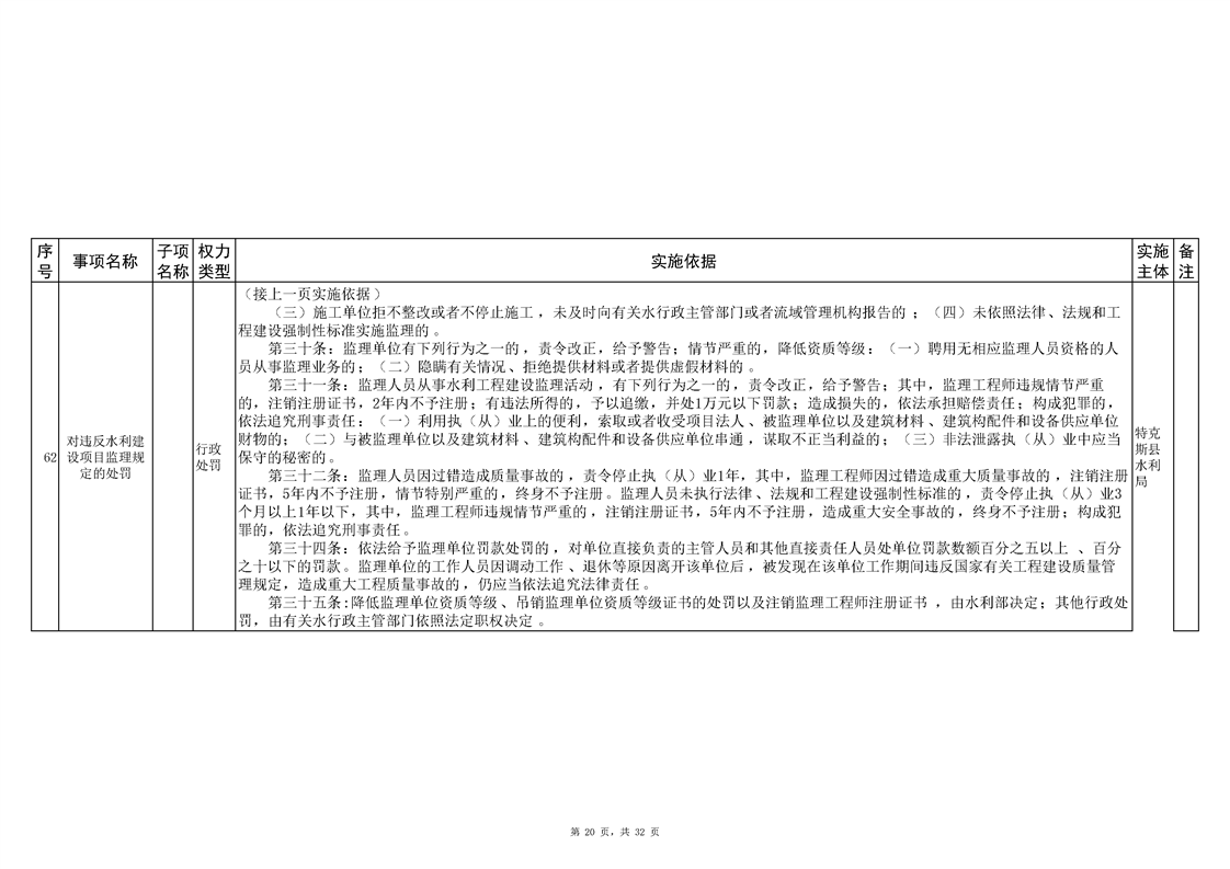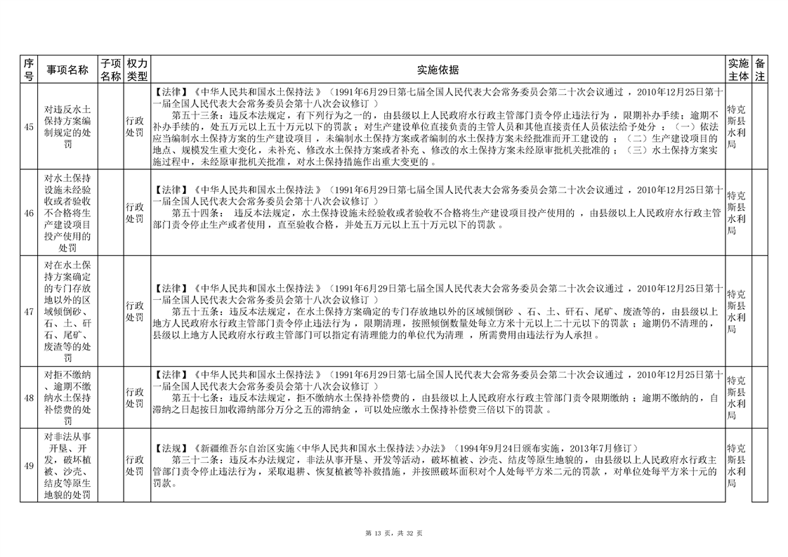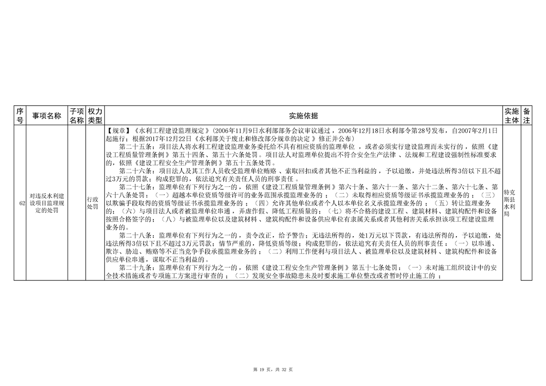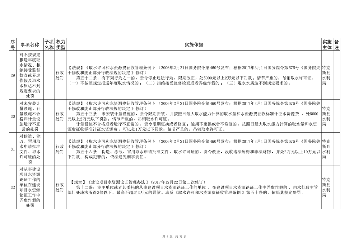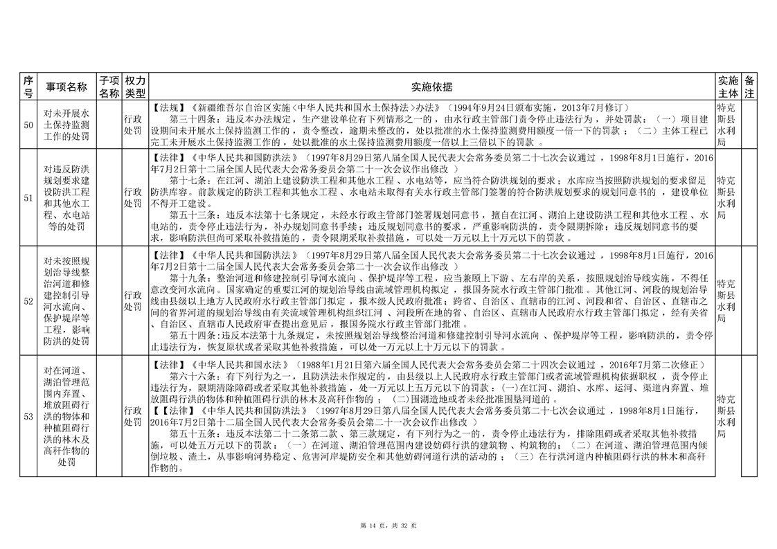 .特克斯县水利局2024年行政执法事项清单
