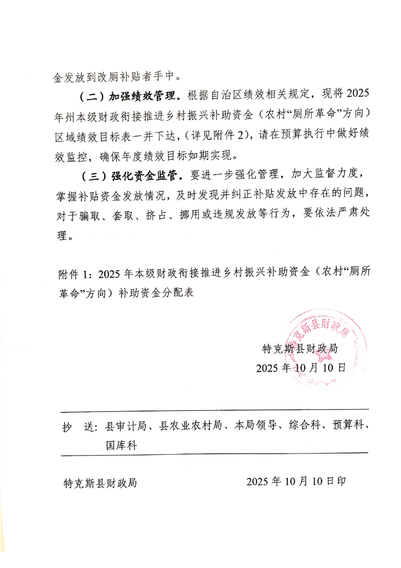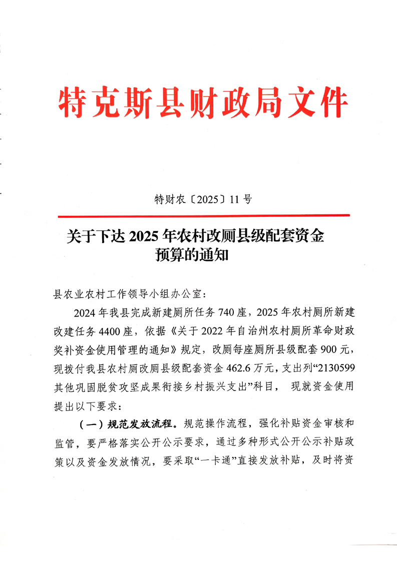 特财农[2025]11号:关于拨付2024年至2025年农村厕所革命本级配套资金的通知