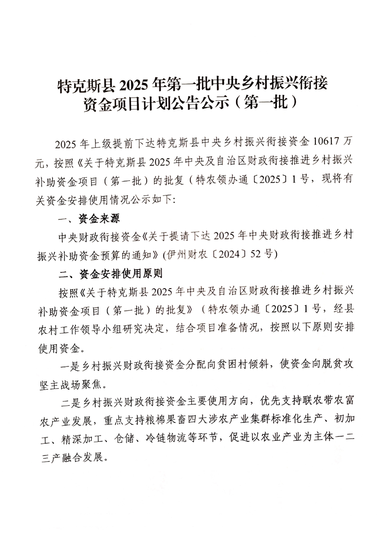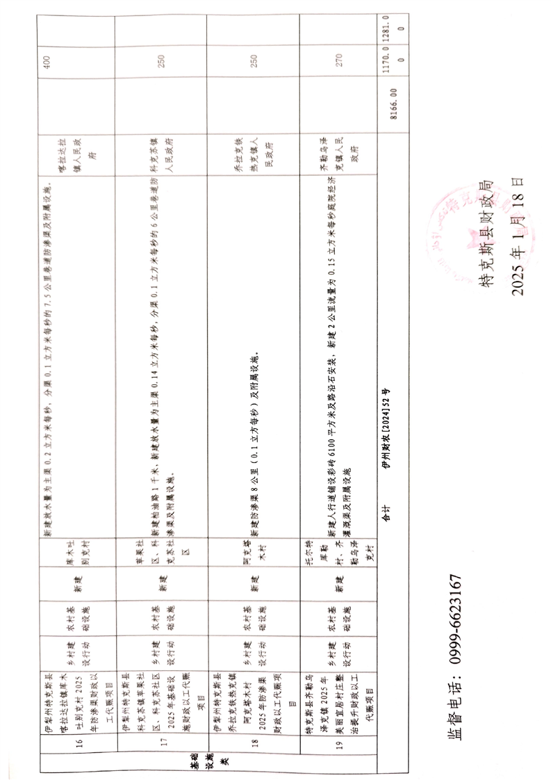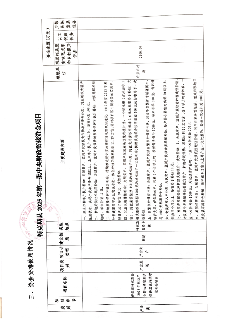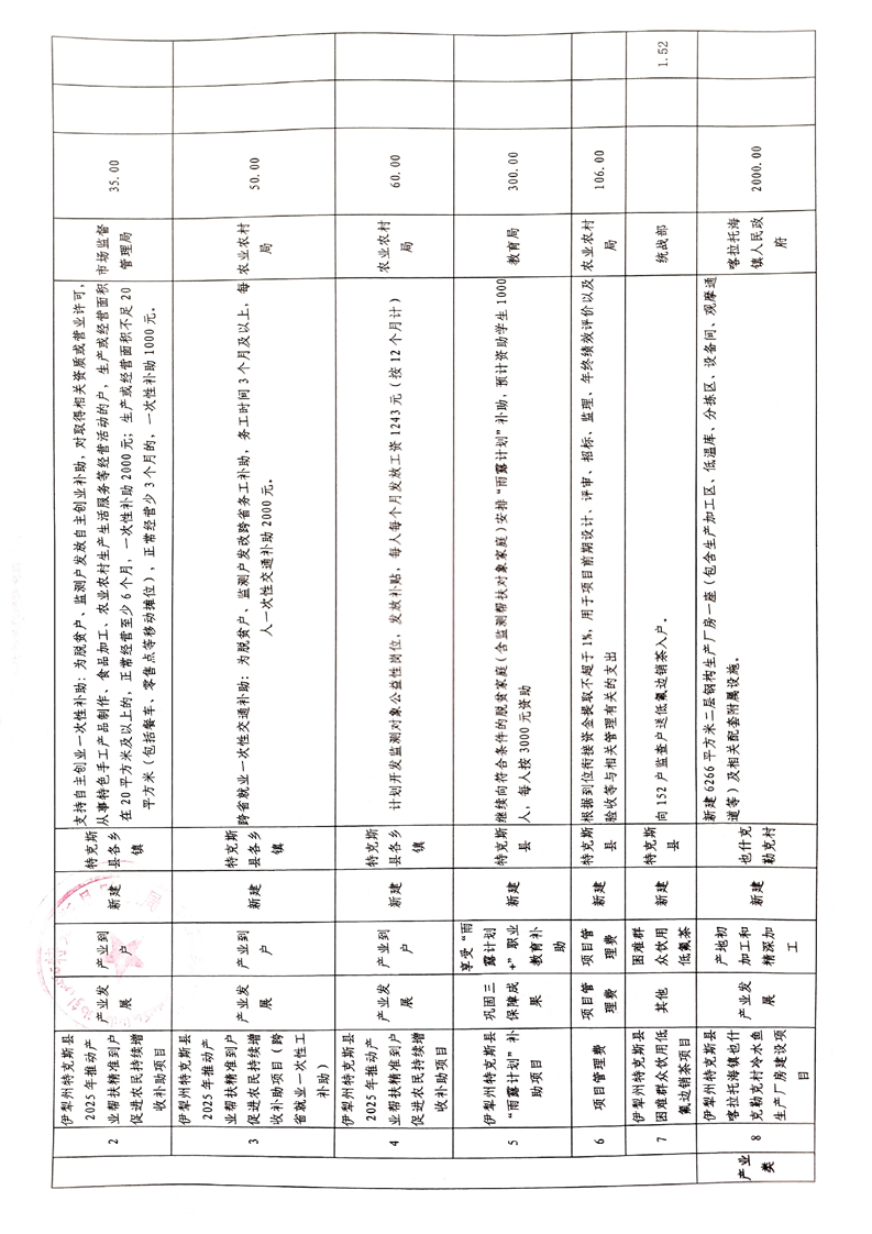 特克斯县2025年中央财政衔接资金项目(第一批)