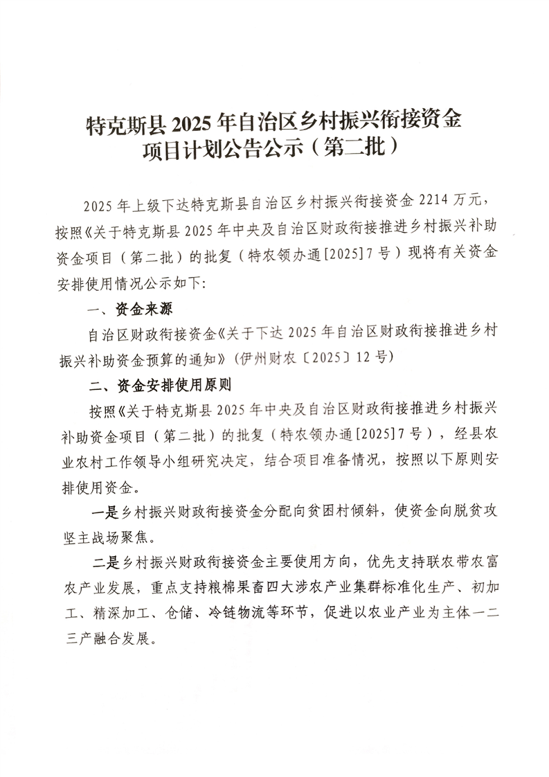 特克斯县2025年自治区财政衔接资金项目(第二批)