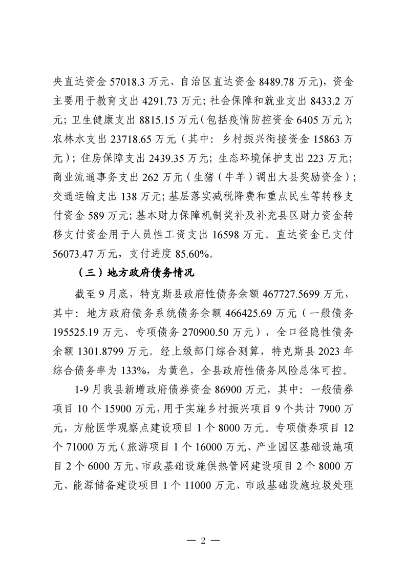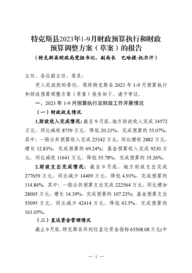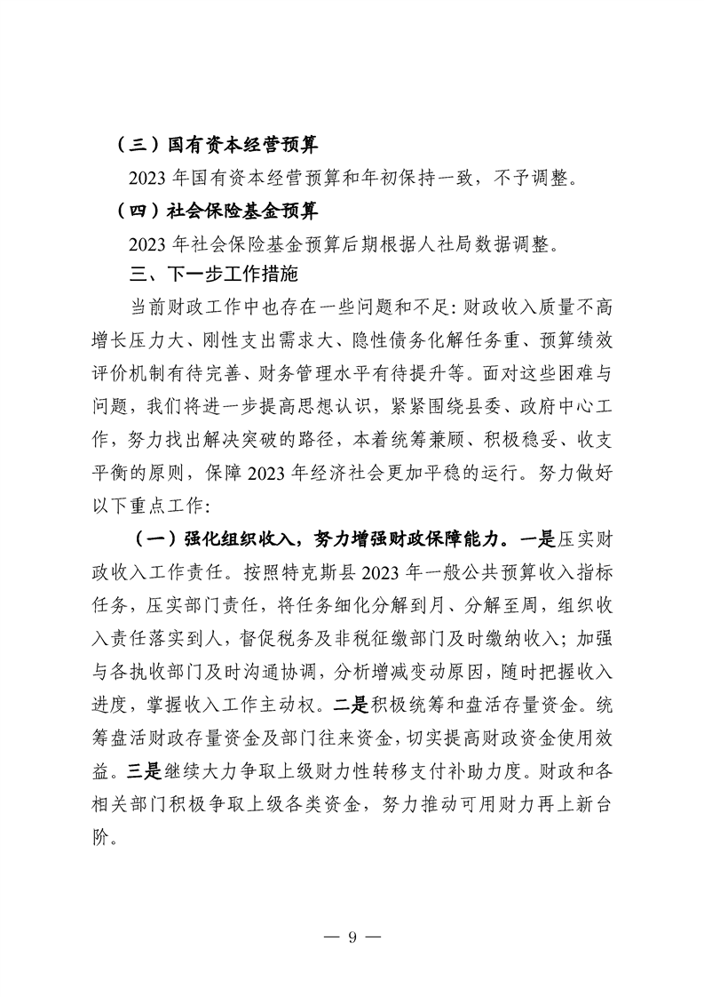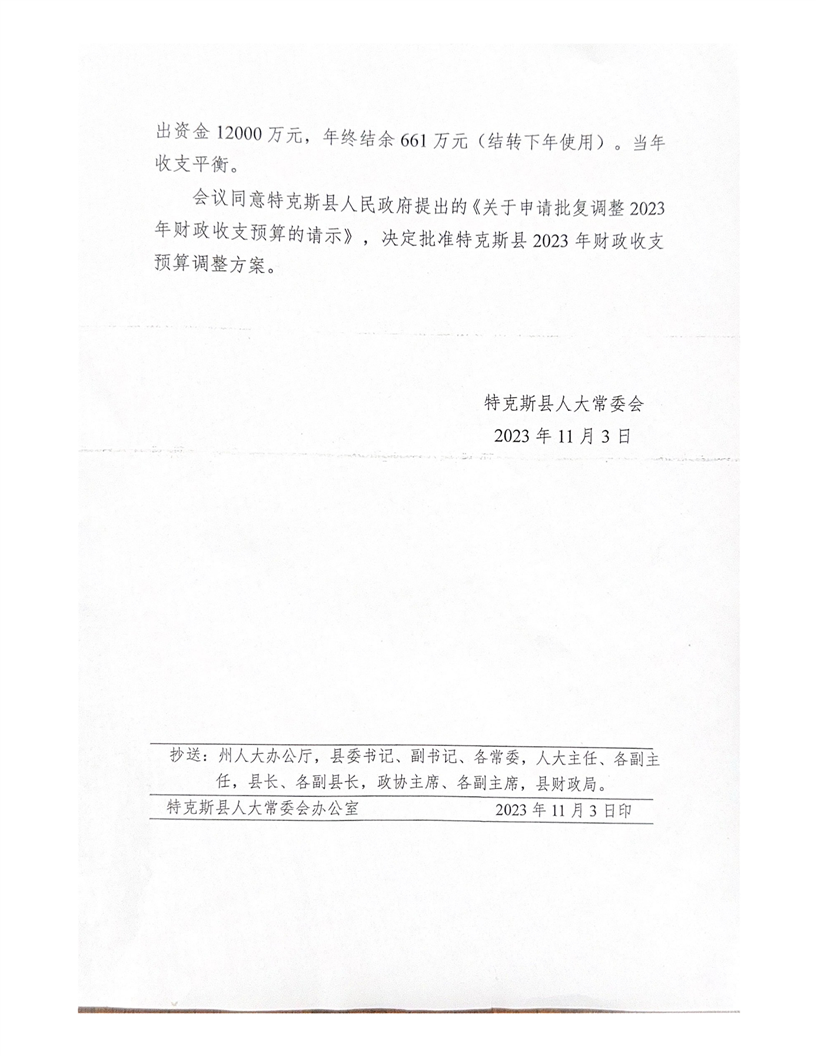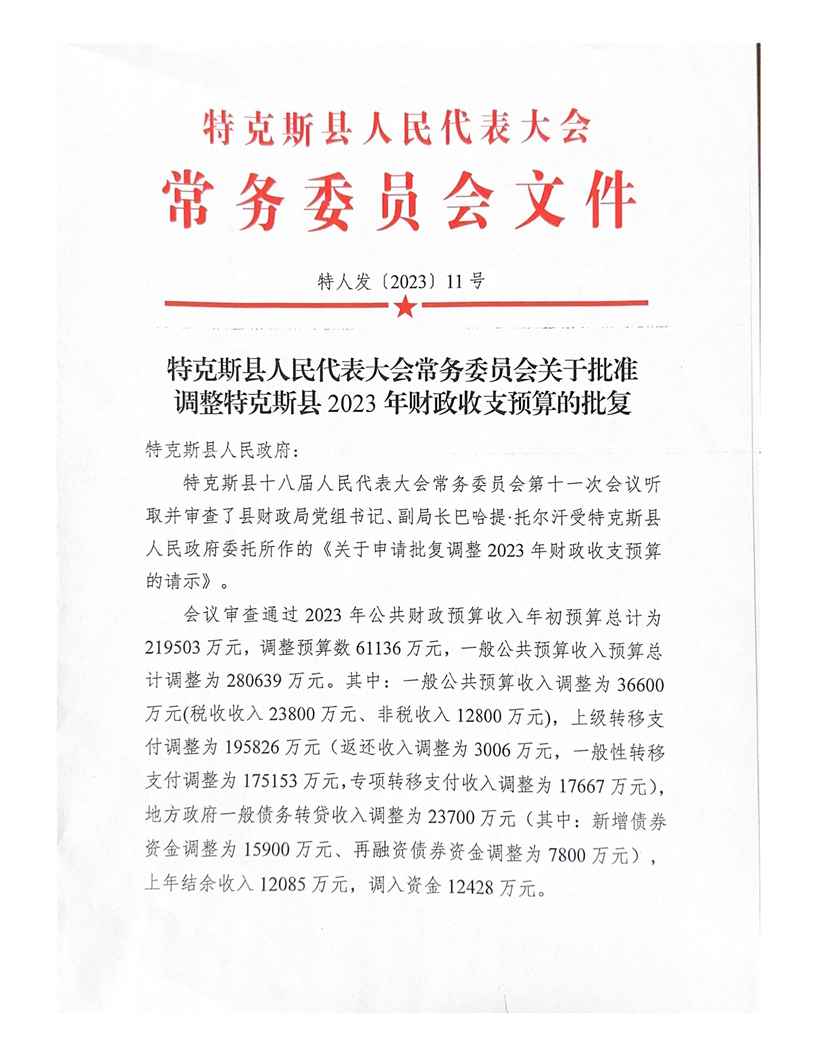 特克斯县人民代表大会常务委员会关于批准调整特克斯县2023年财政收支预算的批复