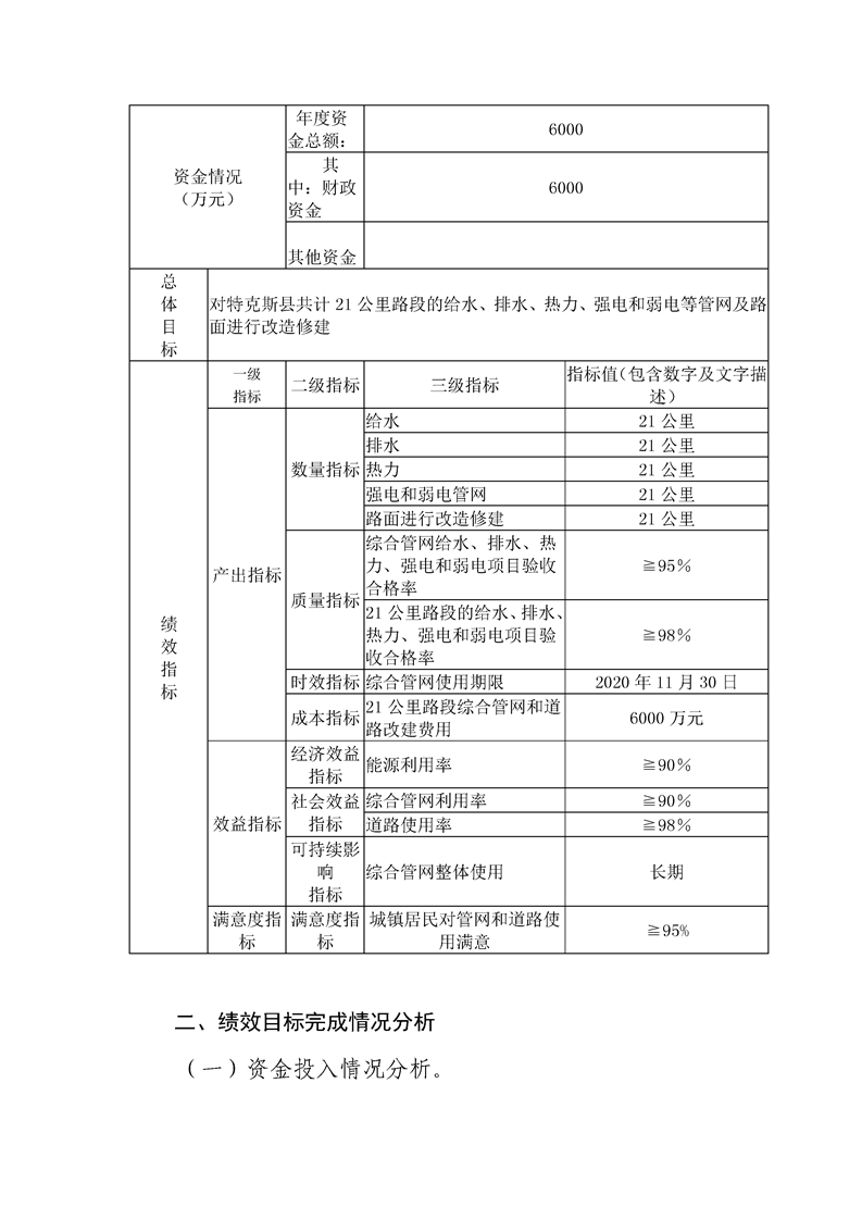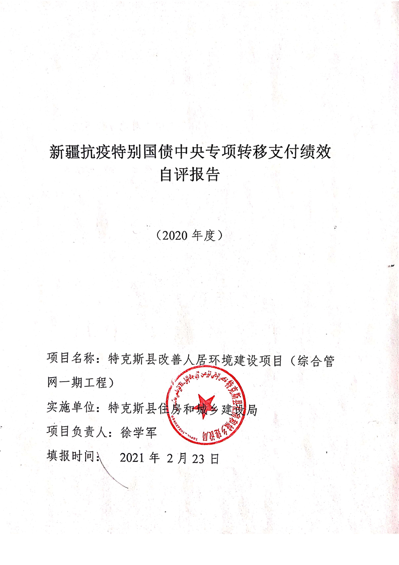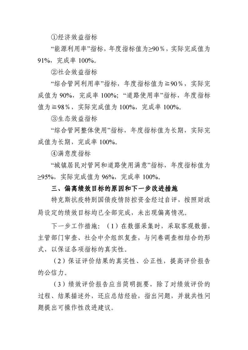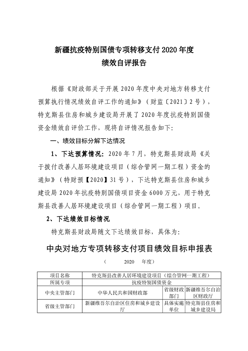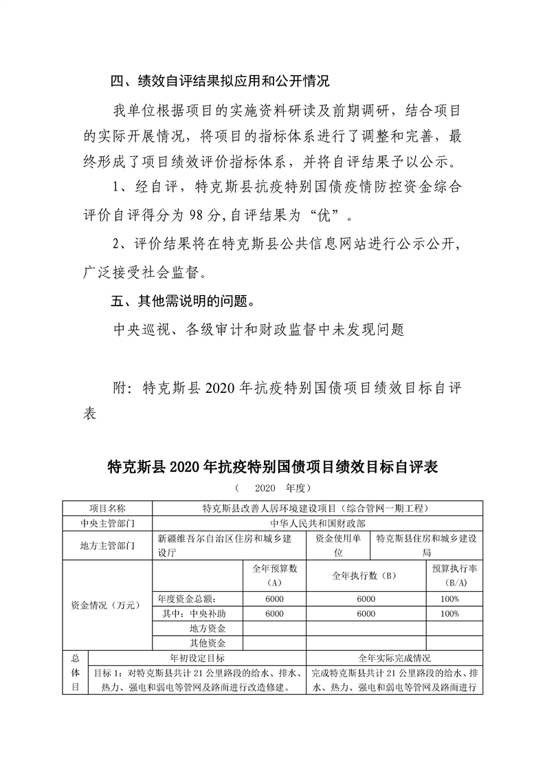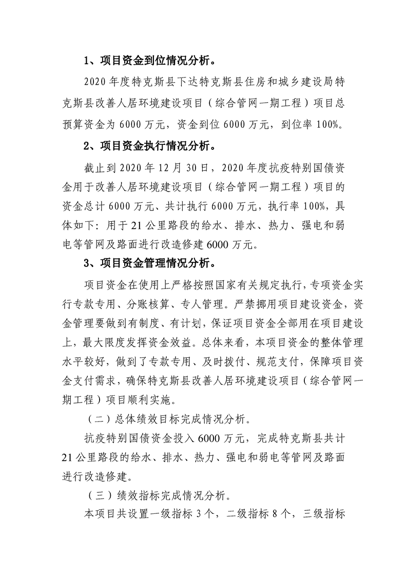 特克斯县2020年抗疫特别国债-特克斯县改善人居环境建设项目(综合管网一期工程)自评报告(6000万元)
