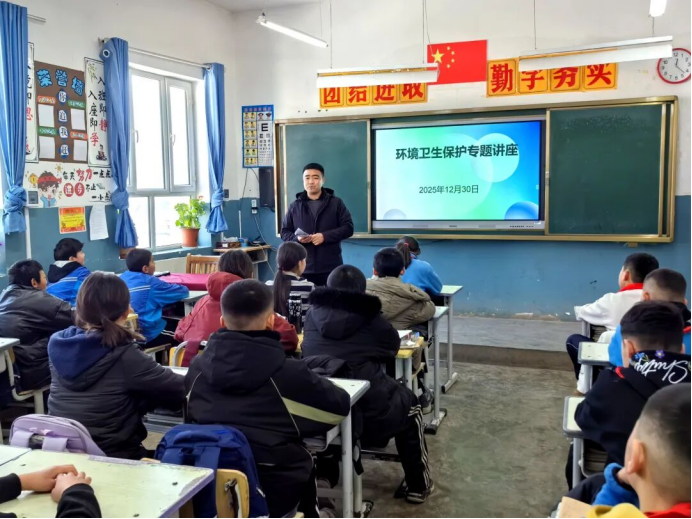 乔拉克铁热克镇孟布拉克村组织工作队员走进辖区校园开展环境卫生保护专题讲座,通过讲解垃圾分类、乡村生态保护等知识,结合案例与问答互动,使学生直观认识到环保重要性,将绿色理念根植于心中。(县市场监督管理局驻乔拉克铁热克镇孟布拉克村工作队 马静)