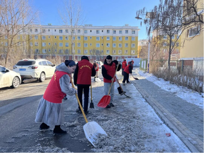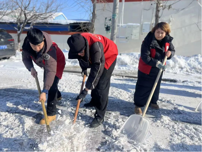呼吉尔特蒙古族乡前进新村组织党员干部群众成立志愿服务队,集中清理主干道、坡弯路段积冰积雪,既保障了村民出行安全,又凝聚了党群共建美好家园的合力。(县农业农村局驻呼吉尔特蒙古族乡前进新村工作队 王万兴)