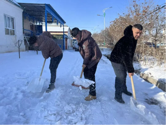 齐勒乌泽克镇阿克奇村组织党员干部成立志愿服务队,集中清理村内主干道、公共区域及坡道拐角等重点地段积雪。大家分工协作,干劲十足,既消除安全隐患,也以实际服务温暖民心,展现了党员干部的责任与担当。(县水利局驻齐勒乌泽克镇阿克奇村工作队 张萌)