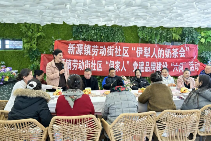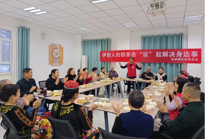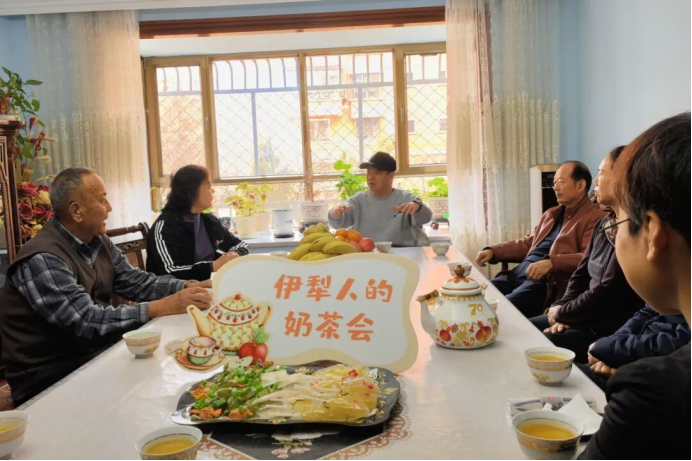 奎屯市乌鲁木齐西路街道金波园社区“两委”联合市人力资源和社会保障局驻社区工作队,开展“伊犁人的奶茶会”群众议事活动,大家围坐一起,在奶茶香中唠家常、展才艺,进一步凝聚社区向心力。(奎屯市乌鲁木齐西路街道金波园社区党总支 杜楠 供稿)