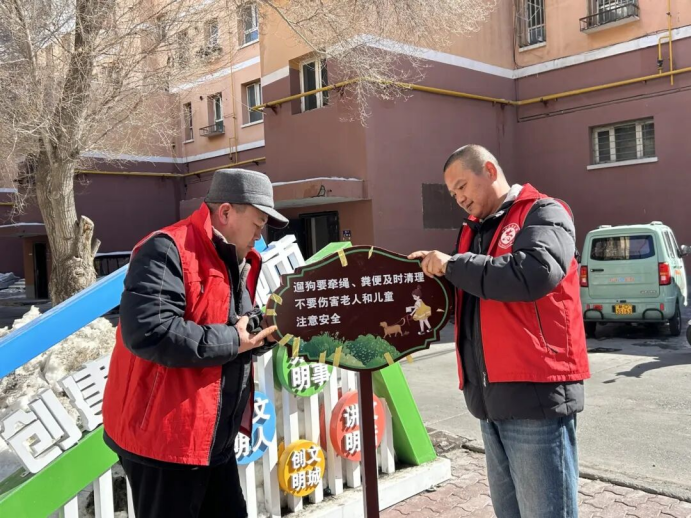奎屯市北京路街道乌孙社区联合市住房和城乡建设局、市审计局驻社区工作队,在小区主干道、绿化带、停车场等区域布设文明提示牌,提醒大家自觉践行文明行为,共建文明社区。(奎屯市北京路街道乌孙社区党委 蔡丽沙 供稿)