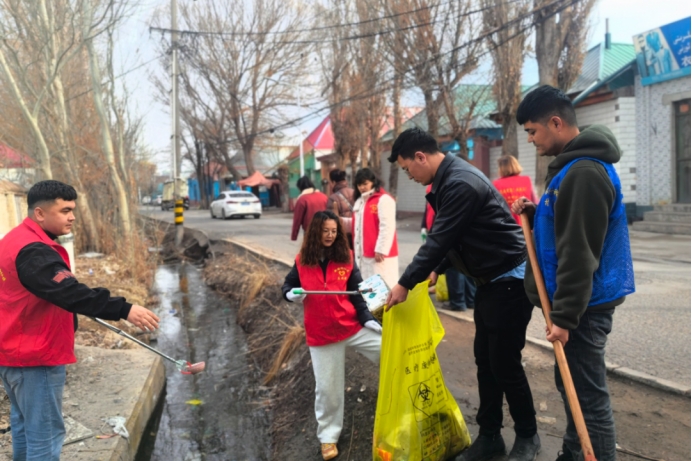 伊宁市塔什库勒克乡新路街社区组织党员志愿者,清理辖区沟渠杂草、淤积垃圾,疏通堵塞段落,提升人居环境品质。(州市场监督管理局驻伊宁市塔什库勒克乡新路街社区工作队 安乐 供稿)