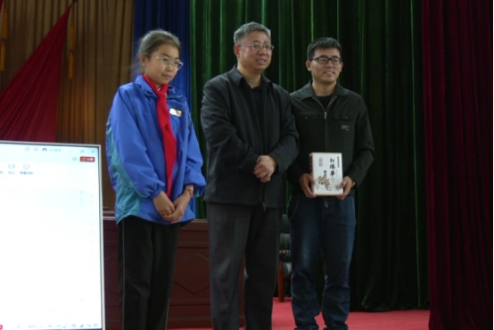 △苗怀明教授向特克斯县干部、学生赠送《红楼梦》 张瑞摄