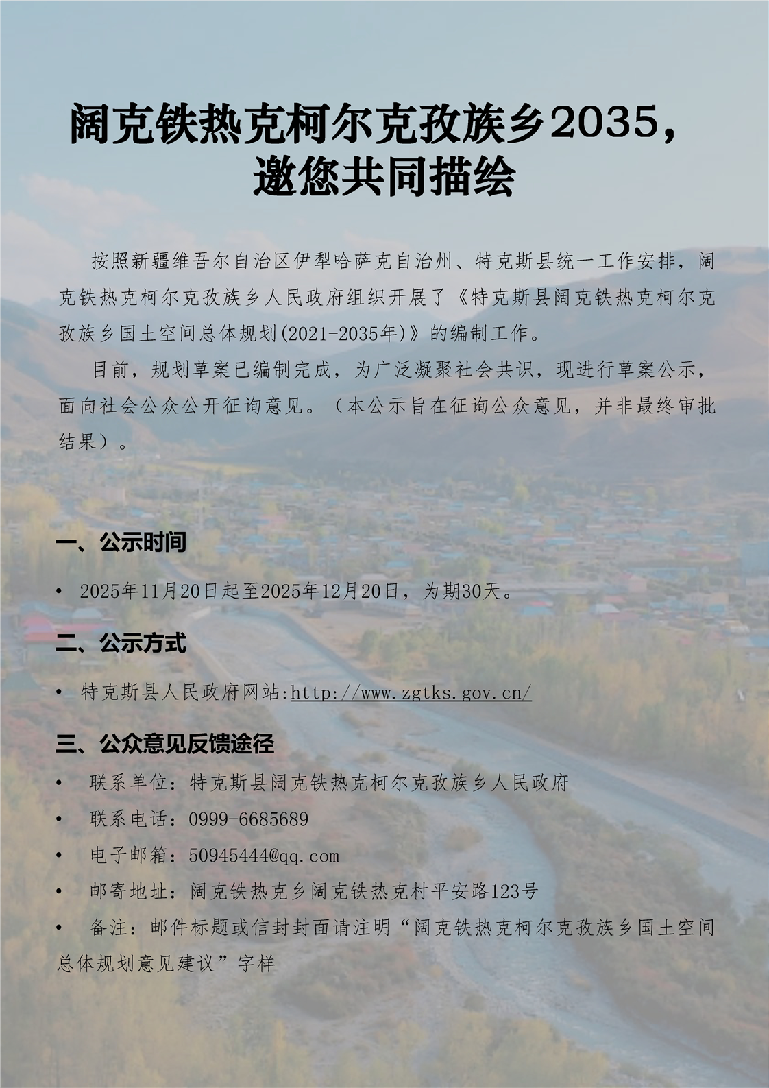 《特克斯县阔克铁热克柯尔克孜族乡国土空间总体规划》公示稿