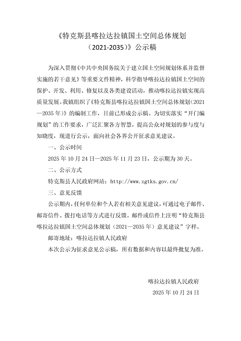 《特克斯县喀拉托海镇国土空间总体规划(2021-2035)》公示稿