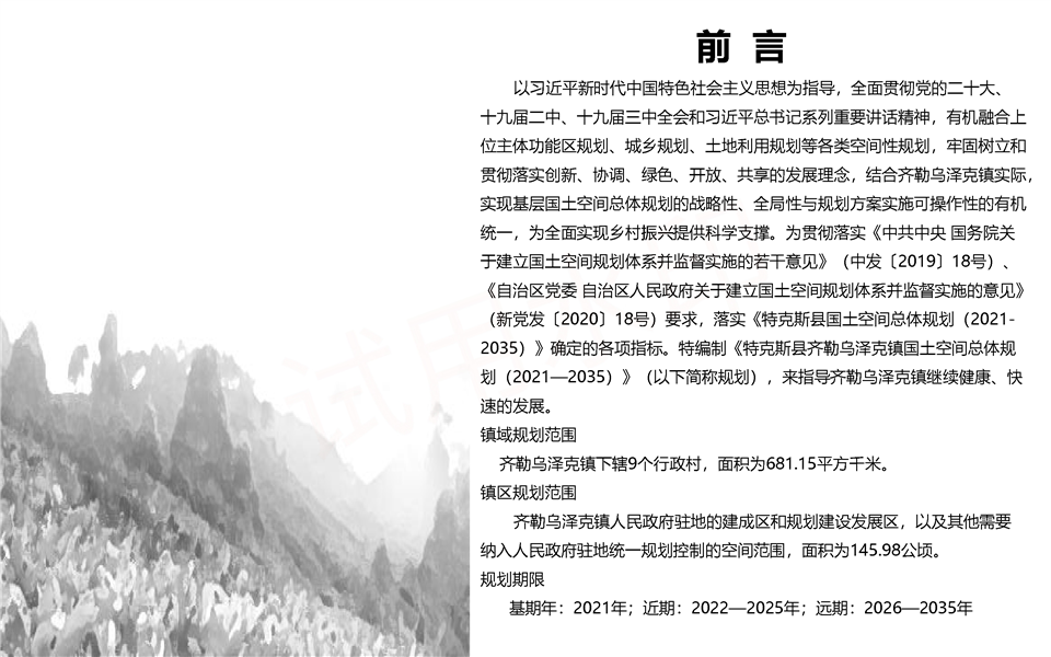 特克斯县齐勒乌泽克镇国土空间总体规划(2021-2035)草案公示稿