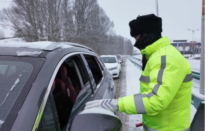 1月17日上午,国道577达坂路段寒意凛冽,雪花纷飞。执勤交警坚守岗位,对过往驾驶员逐一叮嘱,提醒其在降雪天气中行驶务必开启双闪灯、减速慢行,同时督促车上乘客规范系好安全带,把安全细节落到实处。与此同时,交管大队充分依托微信公众号、抖音、视频号等新媒体平台,开展实时路况直播,精准推送冰雪路面行车安全提示,科学引导驾驶员合理规划出行路线,避开风险路段。