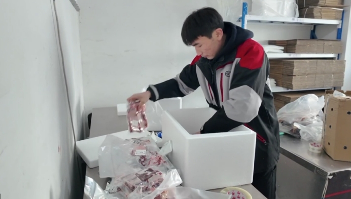 1月12日,特克斯县顺丰速运呼吉尔特蒙古族乡门店内一派繁忙景象。工作人员有序完成牛羊肉产品分拣、打包、装箱、称重、扫码、装车全流程操作。为保障“新鲜直达”,门店配备两台大型冰柜用于低温暂存;对真空包装不达标货品现场拆封重封,装箱时精准放置足量冰袋,凭借专业温控与规范操作,构建起从农牧民直发、企业加工出货至全国百姓餐桌的全程保鲜通道。