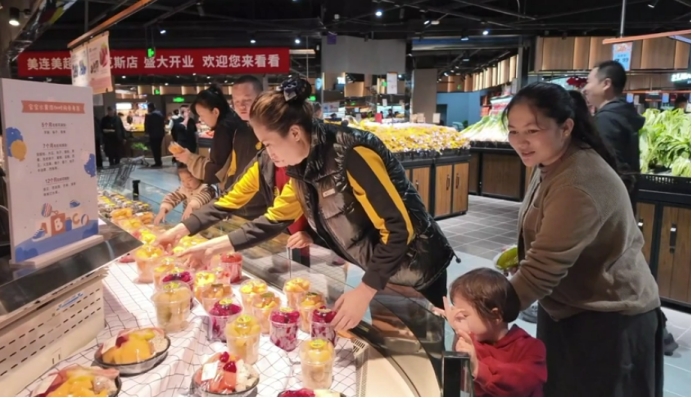 走进城区各大商超,年味扑面而来。年货礼盒、生鲜果蔬、肉蛋粮油、特色食品、休闲零食等各类商品琳琅满目、陈列规整,品类丰富齐全、供应保障充足,全方位满足市民节日采购需求。据美连美超市统计数据显示,节日期间累计备货超20吨各类商品,涵盖80余款年货礼盒、120余种生鲜果蔬,客流量较平日增长120%,销售额同比提升85%。市民们携家带口,在货架间驻足挑选、精心搭配,收银台前秩序井然,选购、结算、打包全流程高效顺畅,热闹的氛围中尽显规范有序,藏着最真切的节日喜悦。