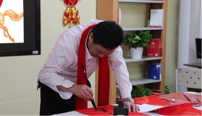 特克斯县观赏石协会会长书法家张耀进说:“很高兴能通过书法艺术,将这份墨香与福气送到春节期间坚守岗位的人武部官兵手中。希望通过笔墨传递祝福,祝愿官兵们在军营建功立业、前程似锦,在这个特殊的“家”中,度过一个温暖光荣、意义非凡的中国年。”