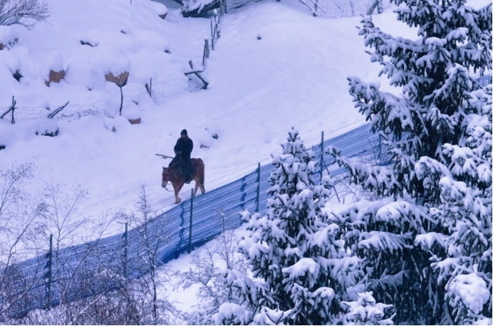 更有雪岭间的牧马人,踏雪而行,为这片静谧的冬日画卷,添上了一抹鲜活的烟火气。