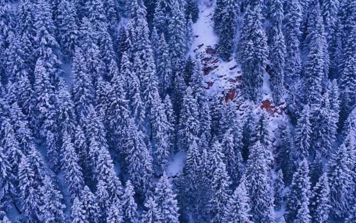 一场落雪过后,这里就换了模样。青松被白雪轻裹,往日的苍劲添上了几分柔和,银霜凝在松针之上,将翠绿晕染成朦胧的诗意。