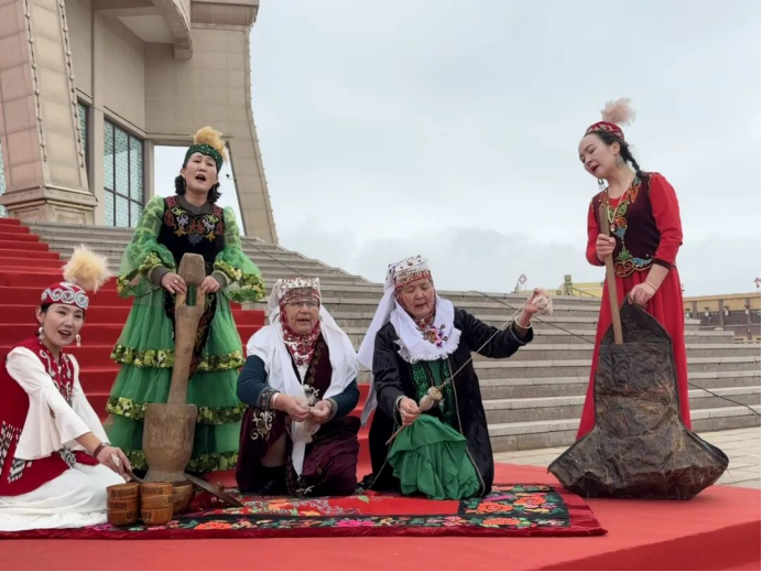 本次活动中,哈萨克族传统民俗“恰秀”精彩上演,表演者向观众抛撒糖果、送上祝福,现场气氛热烈,充分展现了特克斯县各民族交往交流交融、文化共生共荣的良好风貌,让“中华民族一家亲”理念深入人心。随后,喀拉托海镇爱心妈妈们身着盛装,带来哈萨克民歌与红色歌曲联唱,用歌声抒发对家乡的热爱、对美好生活的向往,彰显了各族儿女深厚的家国情怀与感恩祖国的真挚情感。