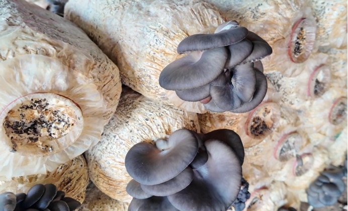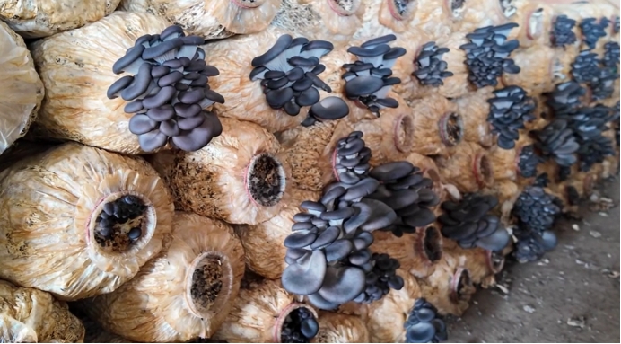 △农户侯富国的设施农业基地内的平菇 李淑姝 摄
