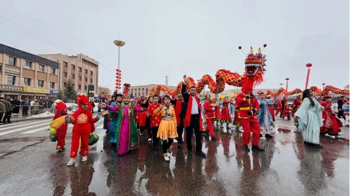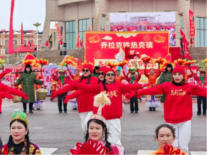 随后,特克斯镇、乔拉克铁热克镇等八个乡镇社火方队依次亮相,各展特色。各队伍将易经文化、玛纳斯文化、草原风情等地域特色与社火民俗融合,演绎了《细君公主和亲》《马踏山河》等精彩节目,舞龙舞狮、民族舞蹈、民俗展演轮番上阵,生动展现乡村振兴成果与民族团结风采。
