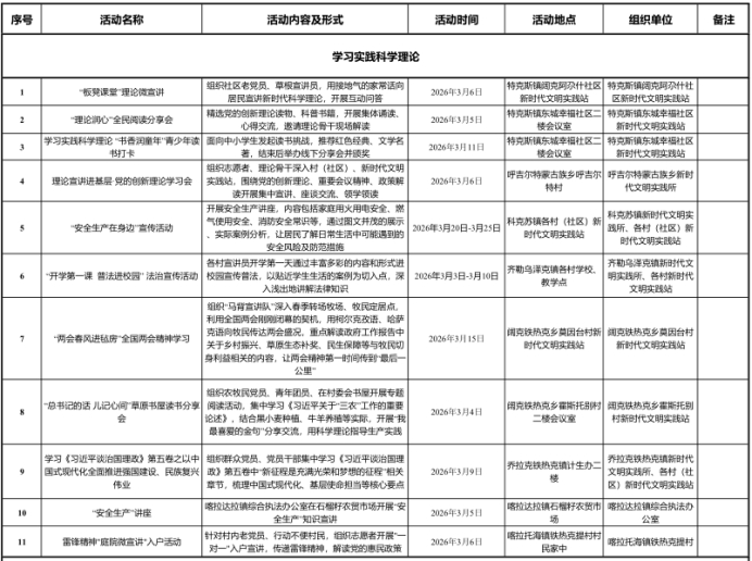 特克斯县新时代文明实践3月活动清单