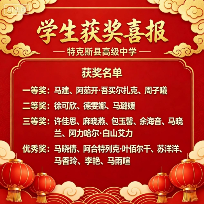 为每一位获奖学子喝彩!为特克斯县高级中学点赞!