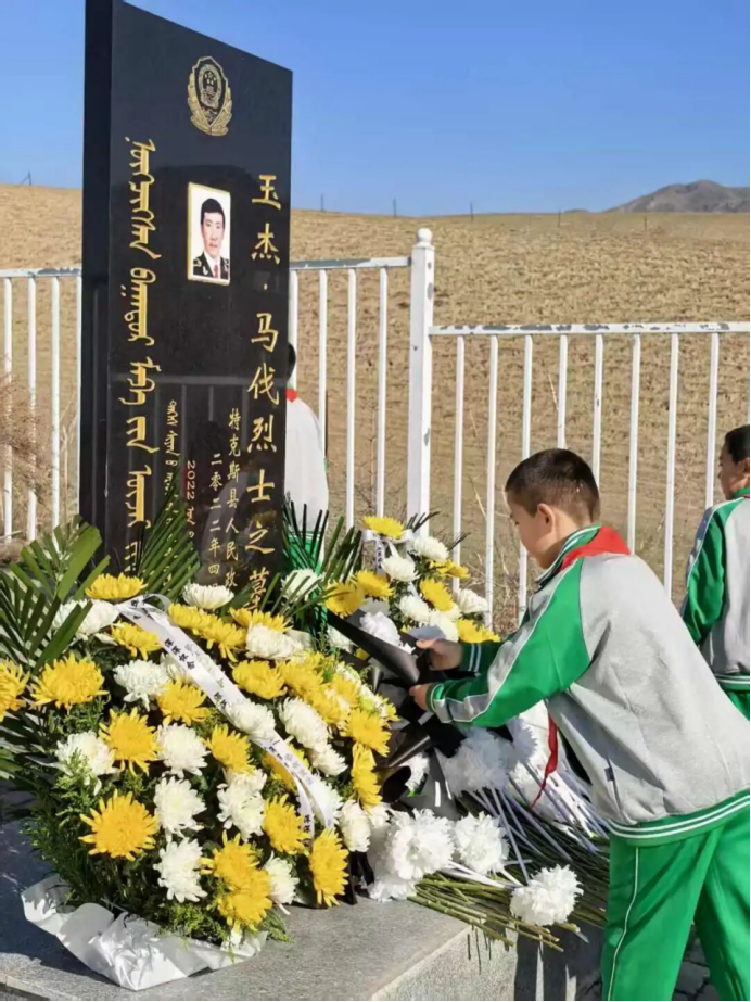特克斯县公安局反诈中心民警克愿说:“烈士用生命践行了‘人民公安为人民’的承诺。我们将以他为榜样,坚守岗位、履职尽责,守护家乡安宁,告慰英烈。”