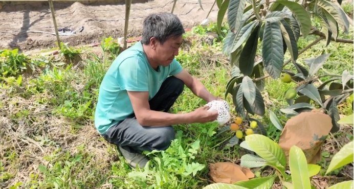 “我种两棚的枇杷,一个棚就是套了个袋,一个棚没套袋,试一下,就是套袋口感好还是不套袋口感好,今年试了以后,明年套袋口感好的话,明年两个棚都套袋,不套袋的口感好话,明年就不套袋了,全部就这样散开就行了。”王天朋一边查看棚内枇杷长势,一边介绍着自己的试种思路,言语间满是对丰收的期待。