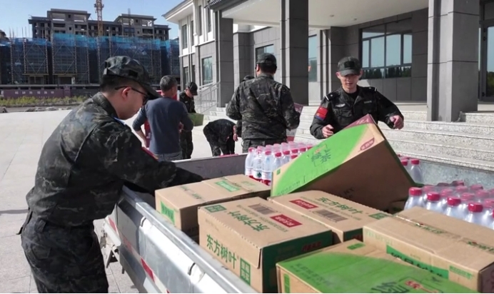 △特克斯县全季酒店八卦城太极坛店委特警队员送上物资 段悦 摄